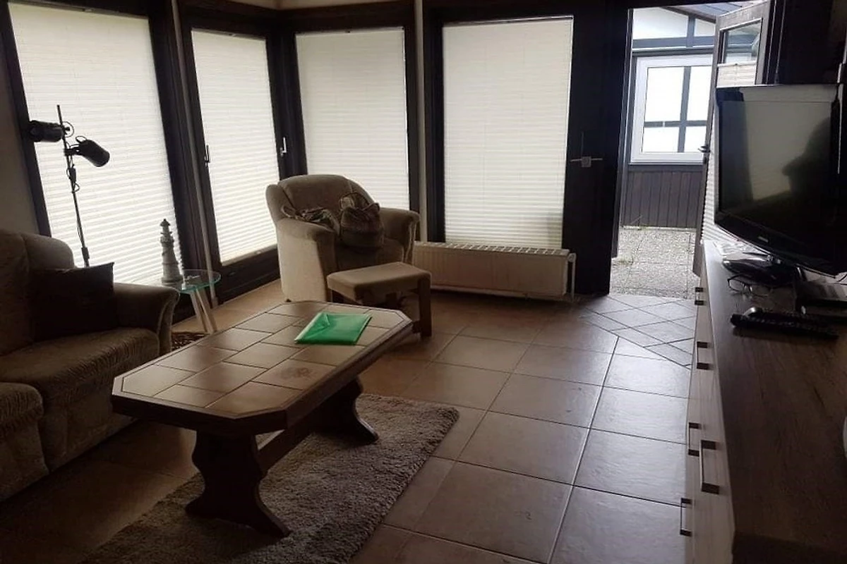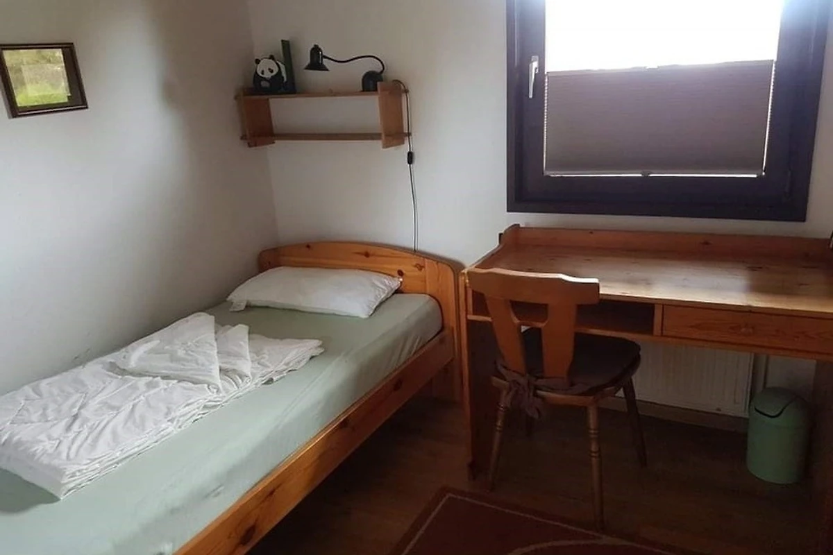 Wir haben gemütlich eingerichteten Wohnraum mit Fernseher, eine vollausgestattete Küche (Geschirrspüler, -Plattenherd, Kühlschrank, Gefrierfach, Backofen, Grill, Mikrowelle, Kaffeemaschine, Toaster u.v.m.) mit Essecke, eine Dusche mit WC sowie einen Abstellraum. An Schlafgelegenheiten stehen zwei Räume zur Verfügung, eines mit Doppelbett und das andere Schlafzimmer mit 2 Einzelbetten, Schrank, Schreibtisch und einer Schlafkoje für eine dritte Person (Kind) über eine Leiter zu erreichen. Eine möblierte Terrasse und ein Rasengrundstück laden für die Sonnenstunden ein. Ein PKW-Stellplatz befindet sich am Haus. Es gibt kostenfreien W-Lan Anschluss.