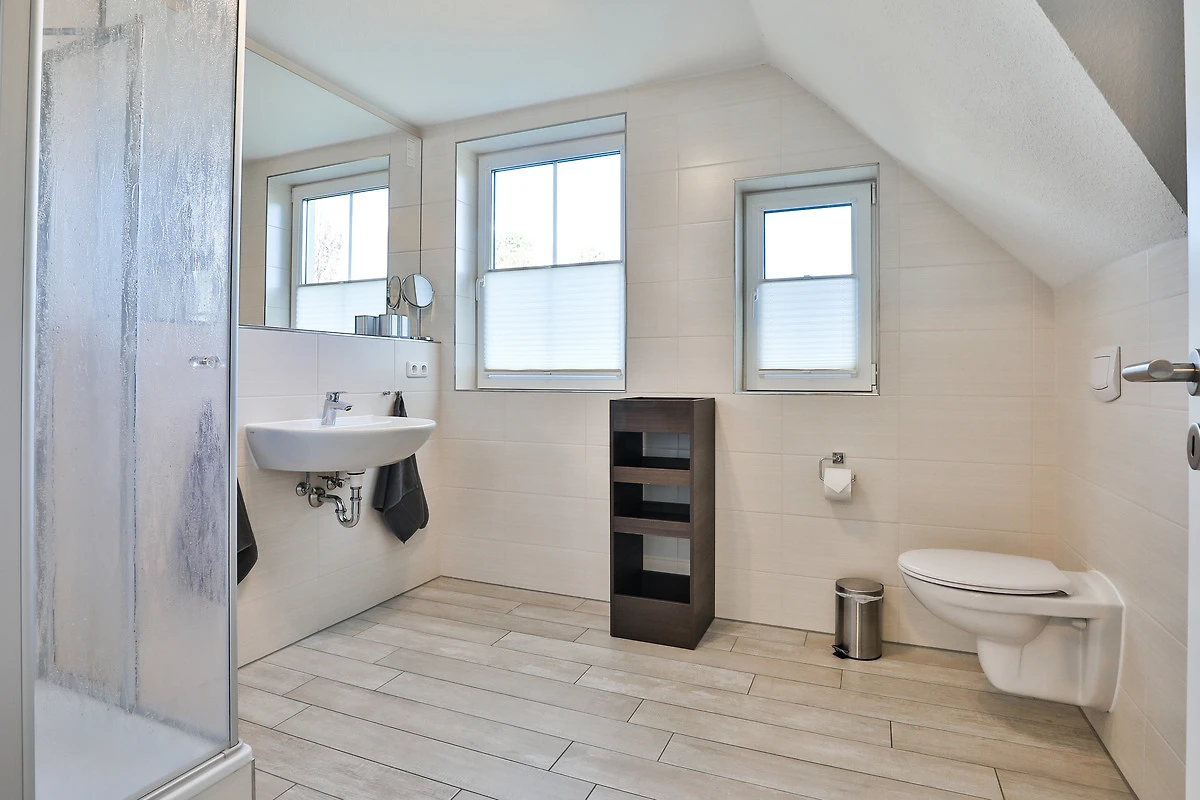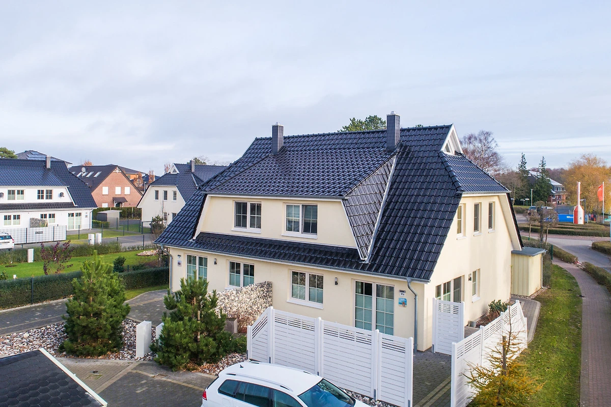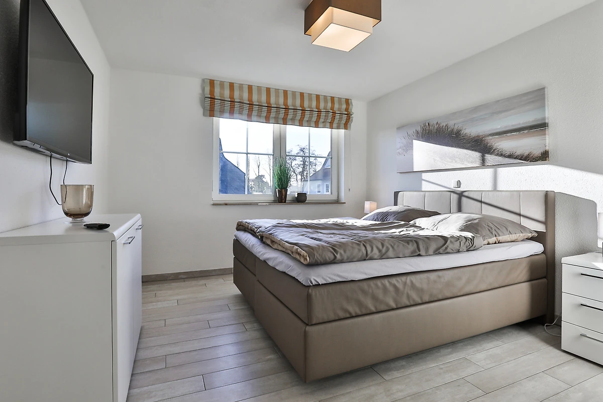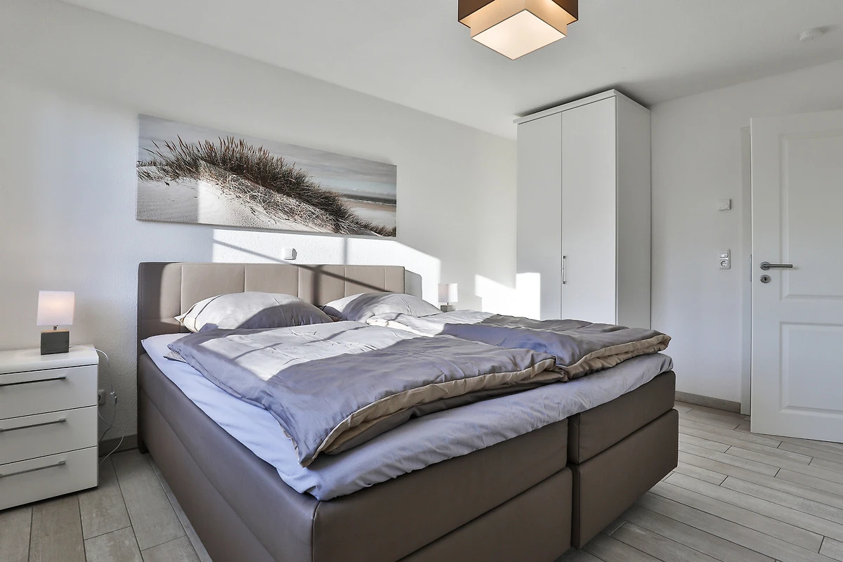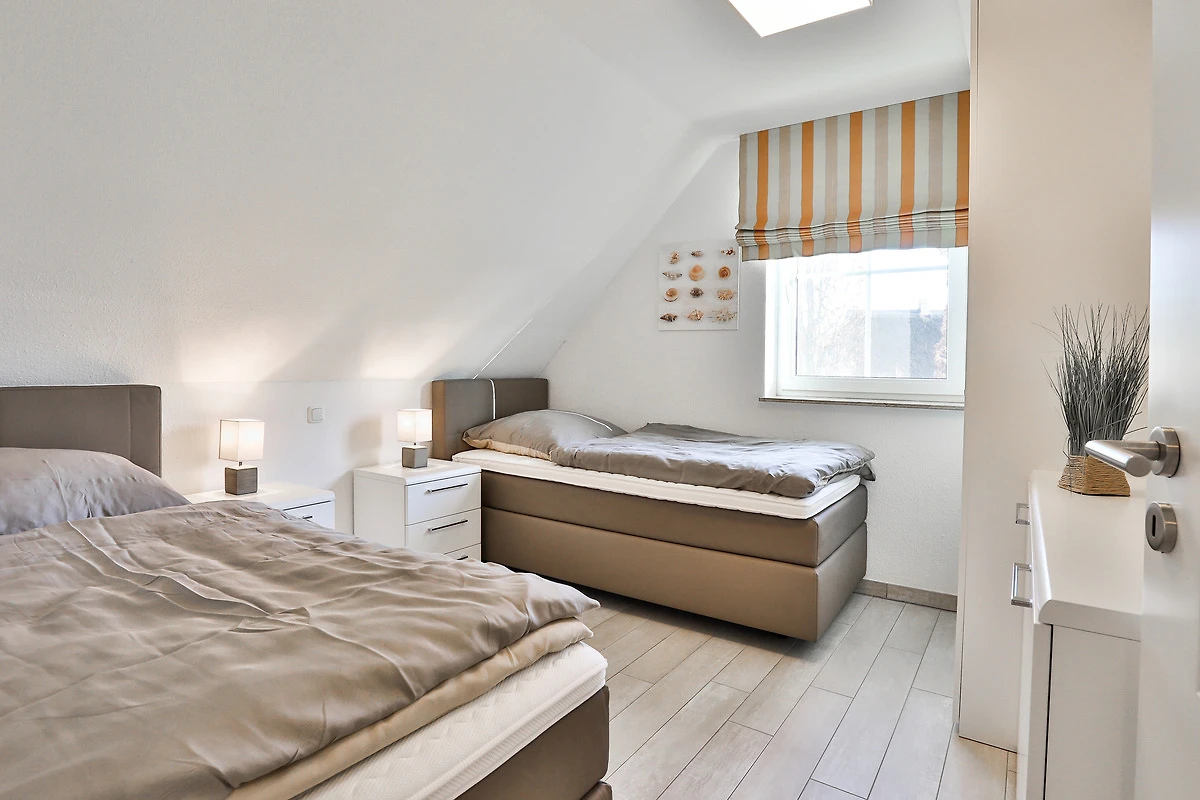 1 x bodengleiche Dusche / WC). Zur weiteren Einrichtung gehören zwei LCD-TV´s mit SAT-TV und WLan im ganzen Haus, Fussbodenheizung und Fliegenschutzgitter, Waschmaschine, Wäschetrockner, ein Kinderreisebett und Kinderhochstuhl. Eine Terrasse mit Gartenmöbeln, ein Grill sowie ein eigener Garten. Zwei Pkw-Stellplätze, ein Fahrradabstellraum, stehen Ihnen zur Verfügung. Die Entfernung zum Strand beträgt ca. 900 Meter und zum Zentrum sind es ca. 10 Minuten Fussweg. Ein Kinderspielplatz befindet sich in unmittelbarer Nähe.