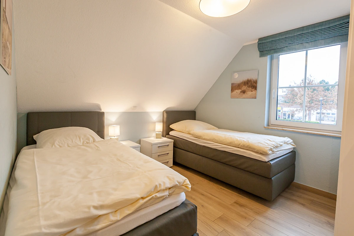 1 x bodengleiche Dusche / WC). Zur weiteren Einrichtung gehören zwei LCD-TV´s mit SAT-TV und WLAN im ganzen Haus, Fussbodenheizung und Fliegenschutzgitter, Waschmaschine, Wäschetrockner, ein Kinderreisebett und Kinderhochstuhl. Eine Terrasse mit Gartenmöbeln, ein Grill sowie ein eigener Garten. Zwei Pkw-Stellplätze, ein Fahrradabstellraum, stehen Ihnen zur Verfügung. Die Entfernung zum Strand beträgt ca. 900 Meter und zum Zentrum sind es ca. 10 Minuten Fussweg. Kinderspielplätze befinden sich in der nahen Umgebung.