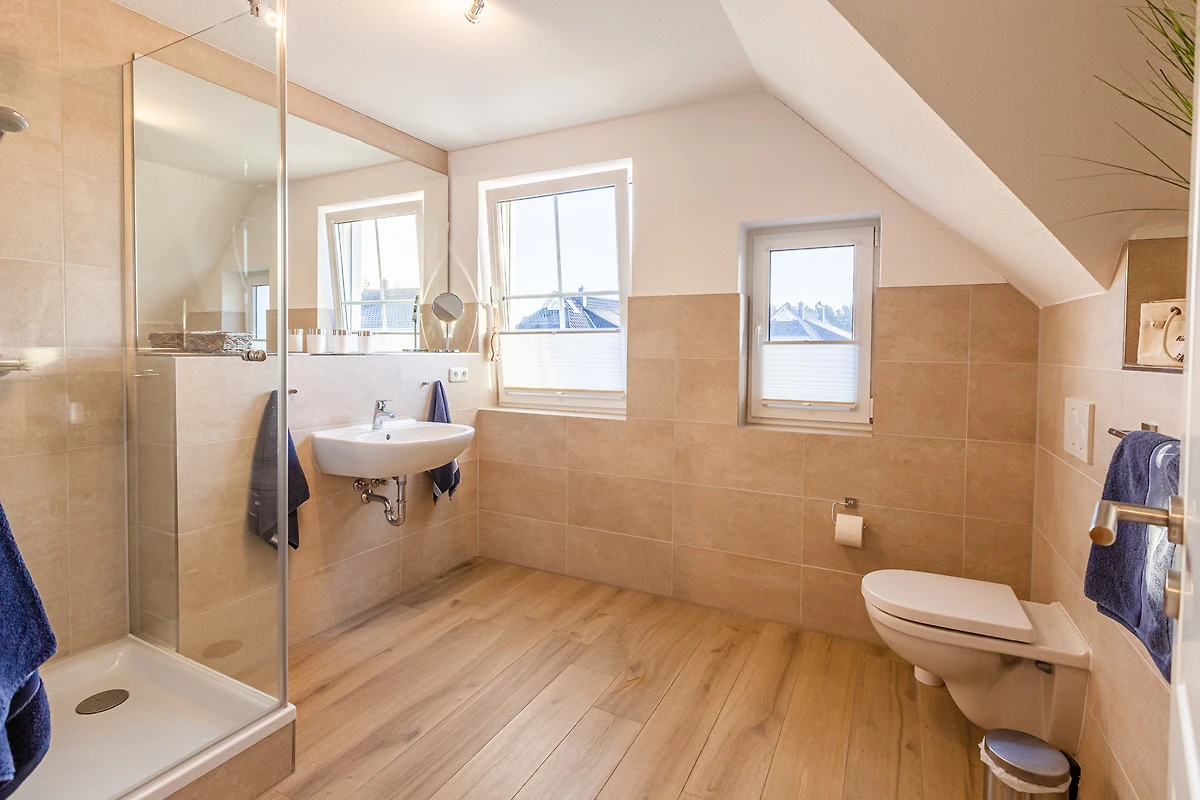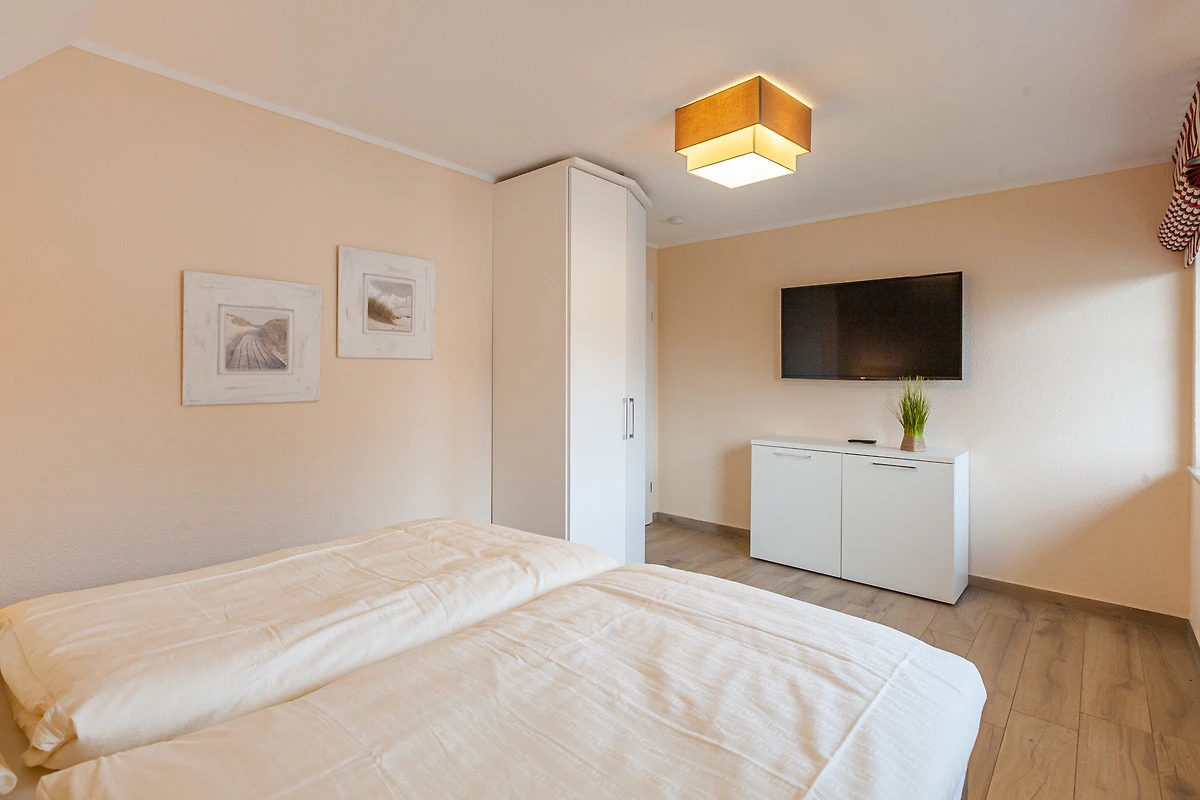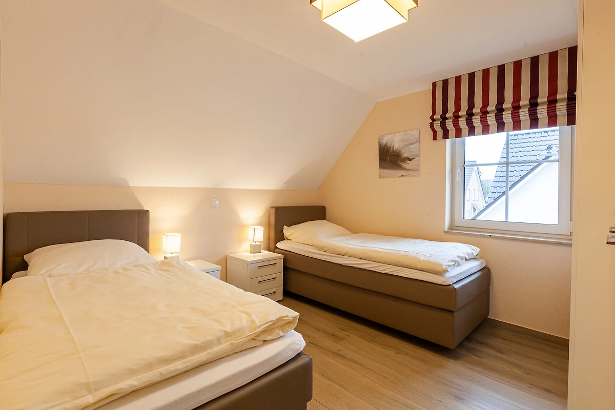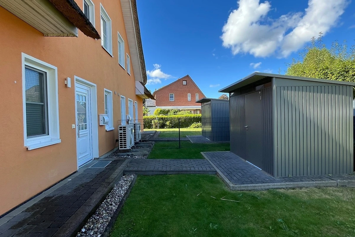 1 x bodengleiche Dusche / WC). Zur weiteren Einrichtung gehören zwei LCD-TV´s mit SAT-TV und WLan im ganzen Haus, Fussbodenheizung und Fliegenschutzgitter, Waschmaschine, Wäschetrockner, ein Kinderreisebett und Kinderhochstuhl. Eine Terrasse mit Gartenmöbeln, ein Grill sowie ein eigener Garten. Zwei Pkw-Stellplätze, ein Fahrradabstellraum, stehen Ihnen zur Verfügung. Die Entfernung zum Strand beträgt ca. 900 Meter und zum Zentrum sind es ca. 10 Minuten Fussweg. Kinderspielplätze befinden sich in unmittelbarer Umgebung. Haustiere (Hund, Katze, etc.) sind in diesem Haus nicht gestattet.