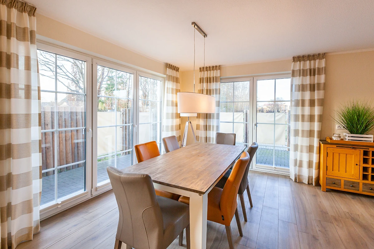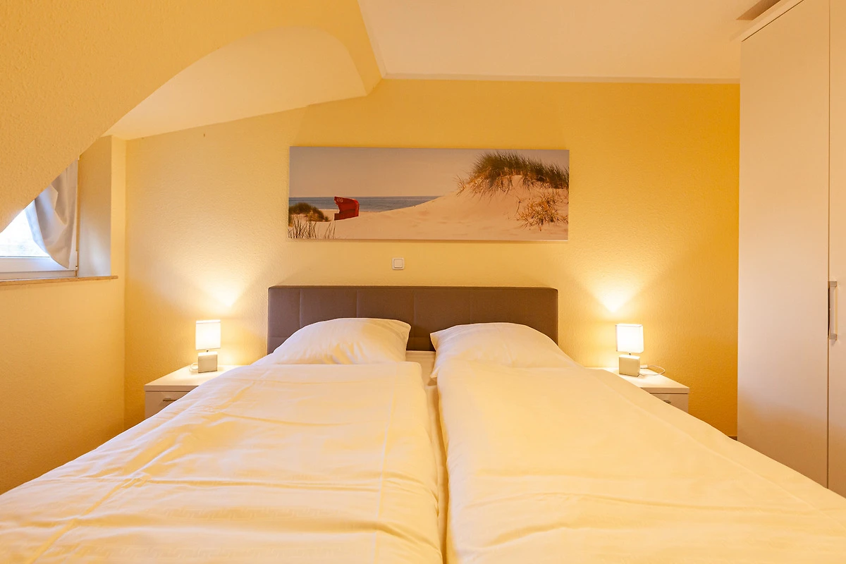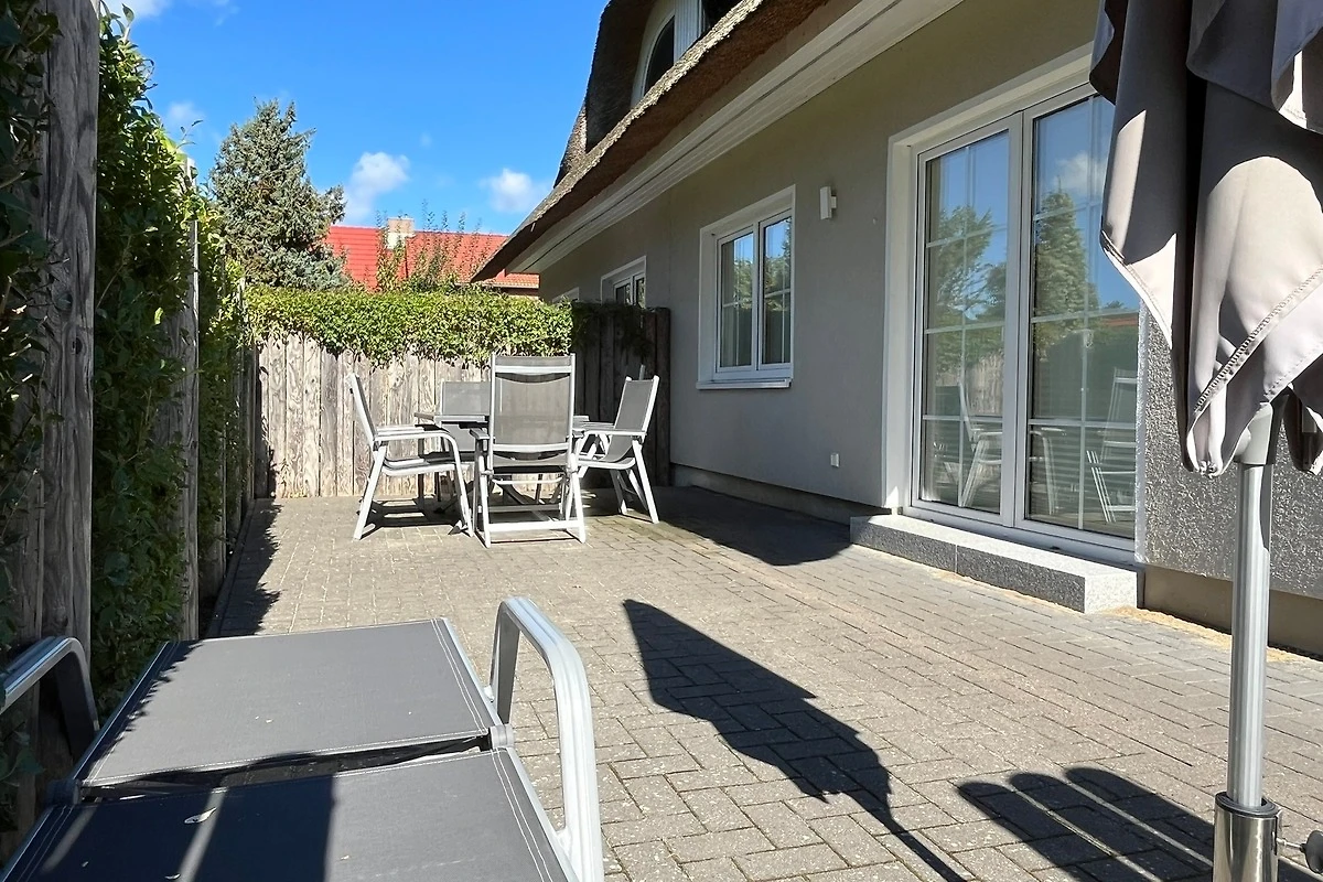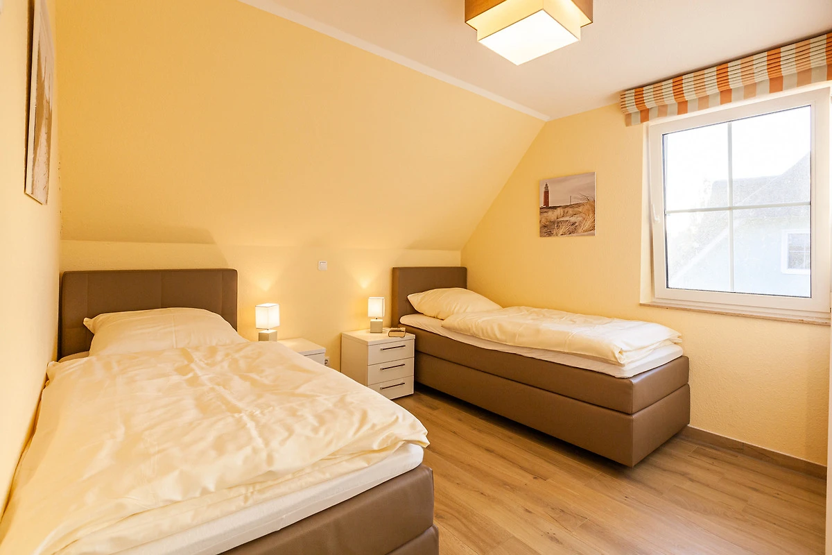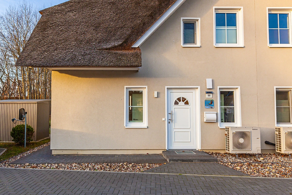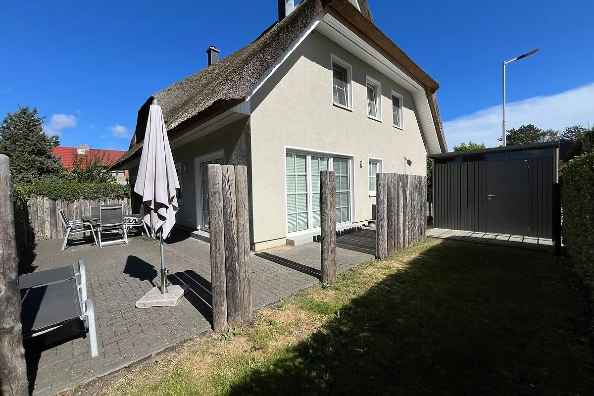 1 x bodengleiche Dusche / WC). Zur weiteren Einrichtung gehören zwei LCD-TV´s mit SAT-TV und WLan im ganzen Haus, Fussbodenheizung und Fliegenschutzgitter, Waschmaschine, Wäschetrockner, ein Kinderreisebett und Kinderhochstuhl. Eine Terrasse mit Gartenmöbeln, ein Grill sowie ein eigener Garten. Zwei Pkw-Stellplätze, ein Fahrradabstellraum, stehen Ihnen zur Verfügung. Die Entfernung zum Strand beträgt ca. 900 Meter und zum Zentrum sind es ca. 10 Minuten Fussweg. Ein Kinderspielplatz ist in der Nähe. Haustiere (Hund, Katze, etc.) sind in diesem Haus nicht gestattet.