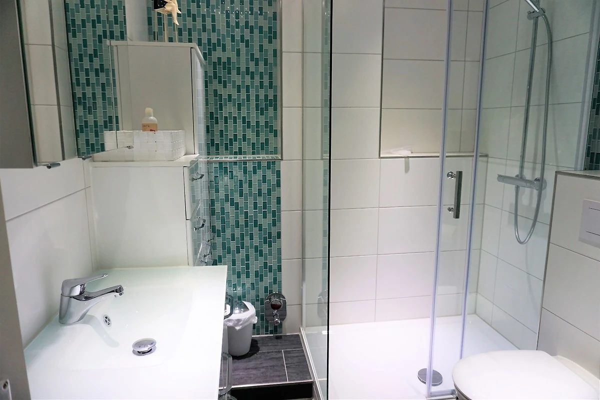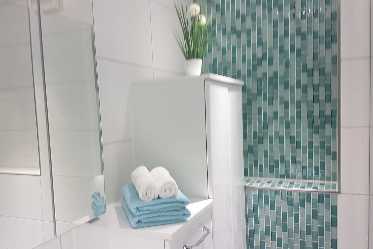 Das moderne, komplett neu renovierte Badezimmer ist mit einem Waschtisch, Spiegelschrank, einem zusätzlichen Schrank, WC, grosszügiger Dusche und einem Handtuchheizkörper ausgestattet. Ein Föhn gehört ebenfalls zur Ausstattung. Ein besonderes Ausstattungsmerkmal dieser modernen Wohnung ist der am Wohnzimmer angrenzende Erker. Hier können Sie in aller Ruhe Ihren Kaffee geniessen oder sich einfach nur an dem Grömitzer Sonnensymbol mit Beleuchtung erfreuen. In dieser geräumigen Wohnung heisst es einfach nur Ankommen und den Urlaub geniessen. Ein Pkw-Stellplatz steht Ihnen direkt hinter der Wohnanlage zur Verfügung. Bitte haben Sie Verständnis, dass es sich bei diesem Ferienobjekt um ein Nichtraucherdomizil handelt. Hunde gerne auf Anfrage.