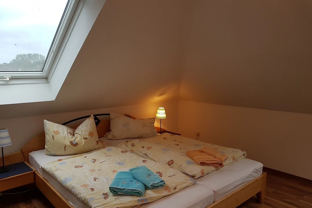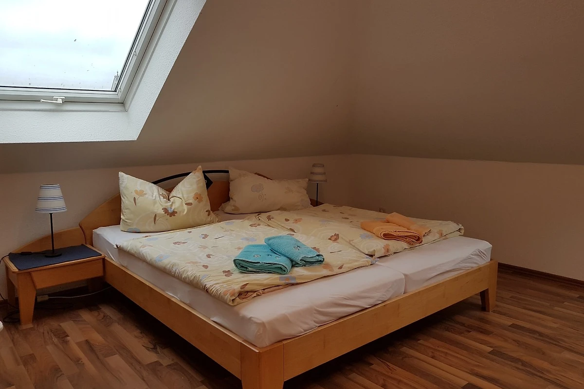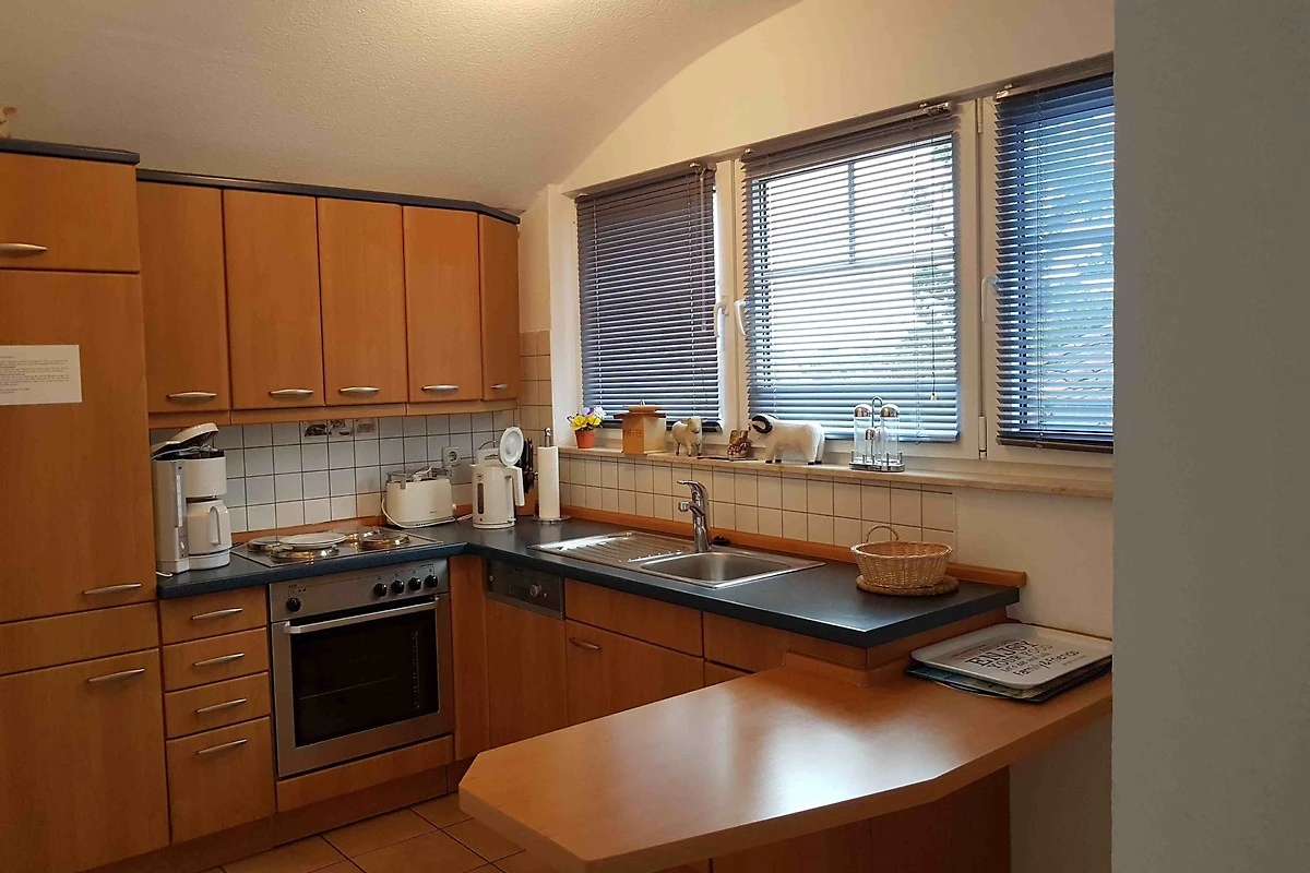 Wohnen Sie in der grosszügig geschnittenen Ferienwohnung mit einer hellen und freundlichen Einrichtung. Die Ferienwohnung kann von 2-4 Personen belegt werden. Im grossen Wohnzimmer (mit Ausziehsofa) befindet sich eine Sitzecke, ein Essbereich, und die Küchenzeile. Die Einbauküche verfügt über einen Geschirrspüler, Elektroherd, sowie weitere technische Geräte. Der Balkon grenzt an das Wohnzimmer. Im Schlafzimmer befindet sich ein Doppelbett. Die Ferienwohnung ist mit SAT-TV und Stereoanlage, sowie Internetzugang W-Lan ausgestattet.