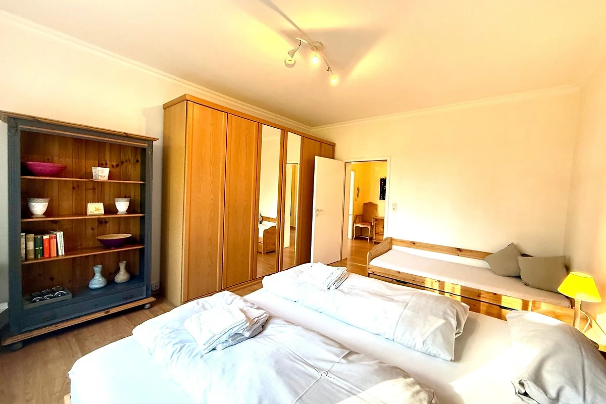 Die helle, freundliche Wohnung ist für zwei erwachsene Personen optimal. Ein drittes Bett im Schlafzimmer oder das Schlafsofa im Wohnzimmer stehen für ein Kind zur Verfügung.