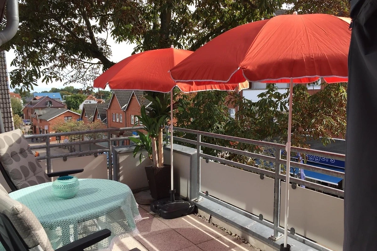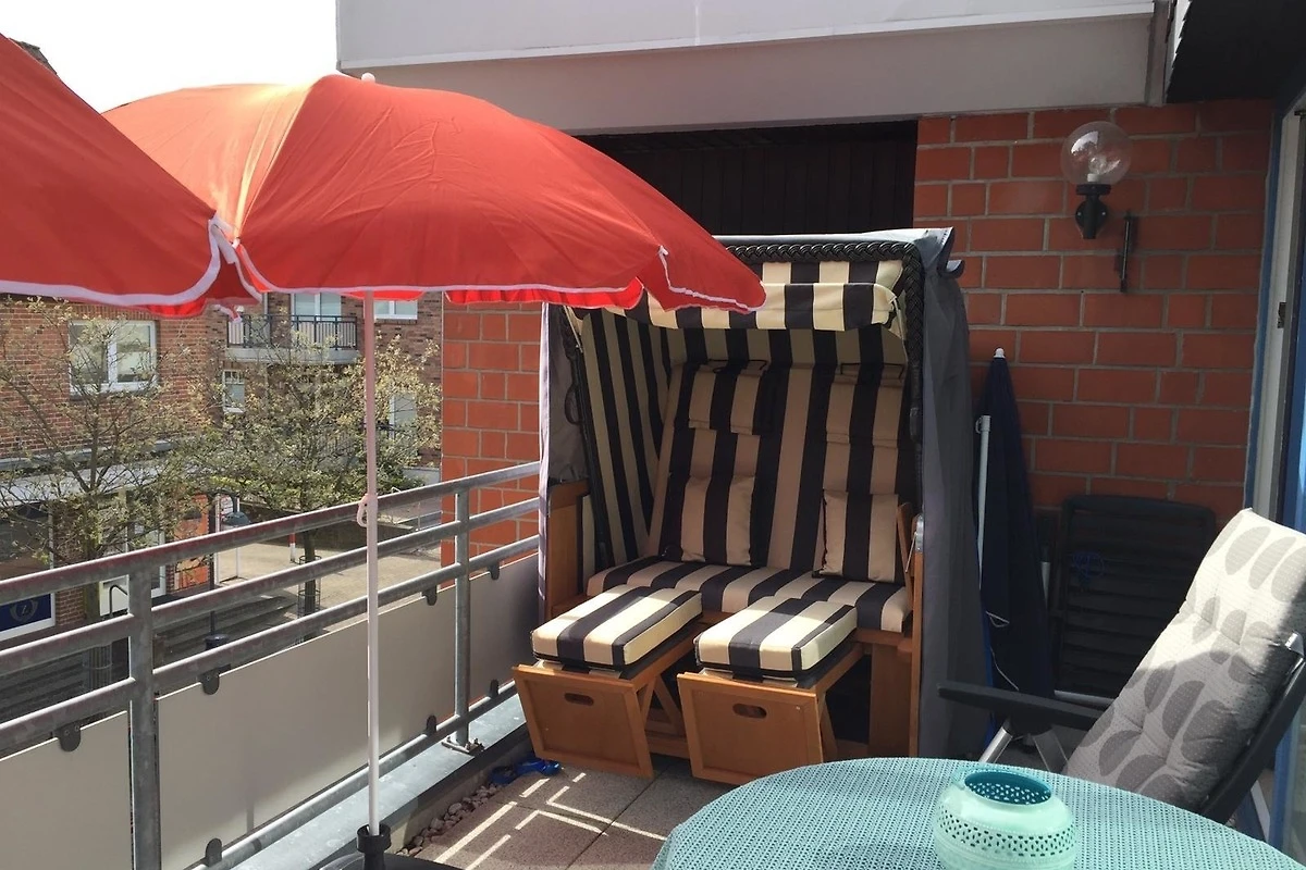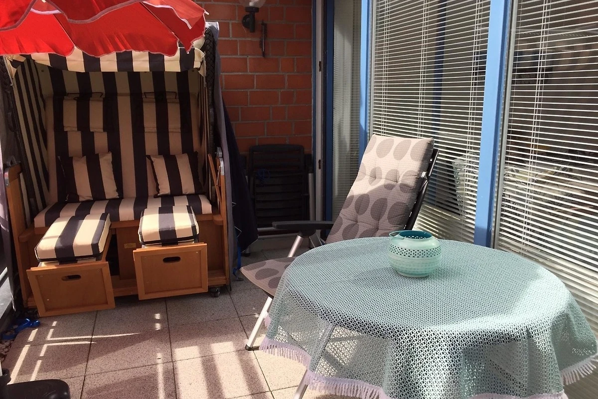 Ein ca. 13 qm grosser Balkon in Süd-Ost-Lage sorgt für Erholung in behaglicher Umgebung. Hier geniessen Sie Ihr Glas Wein auf bequemen Balkonstühlen oder im Strandkorb; zwei Sonnenschirme spenden Schatten. Ein kostenfreier W-LAN Anschluss gehört zu Ihrer Wohnung dazu. Ein schöner Strandkorb wartet nicht nur an der Unterkunft, sondern auch direkt am Strand auf Sie.