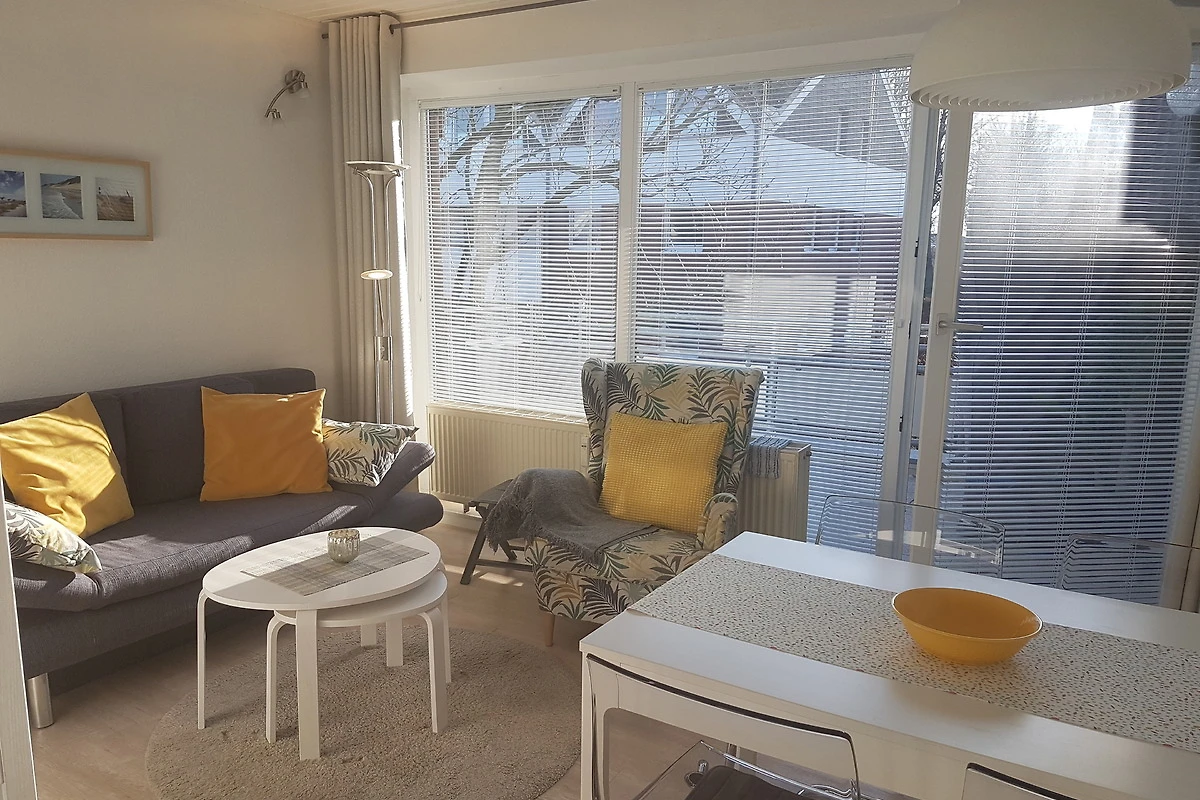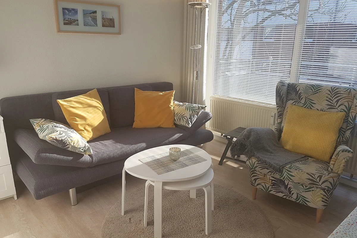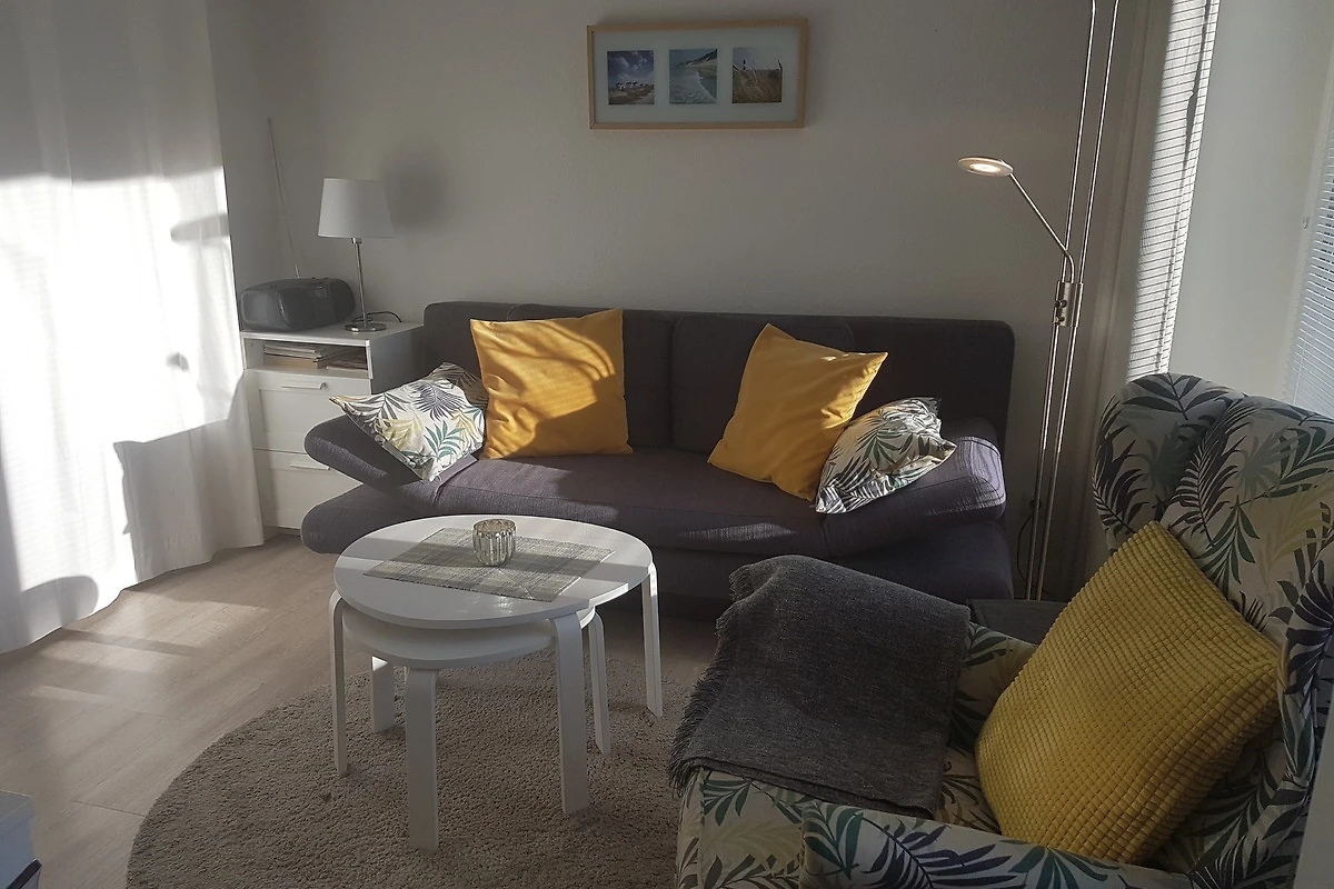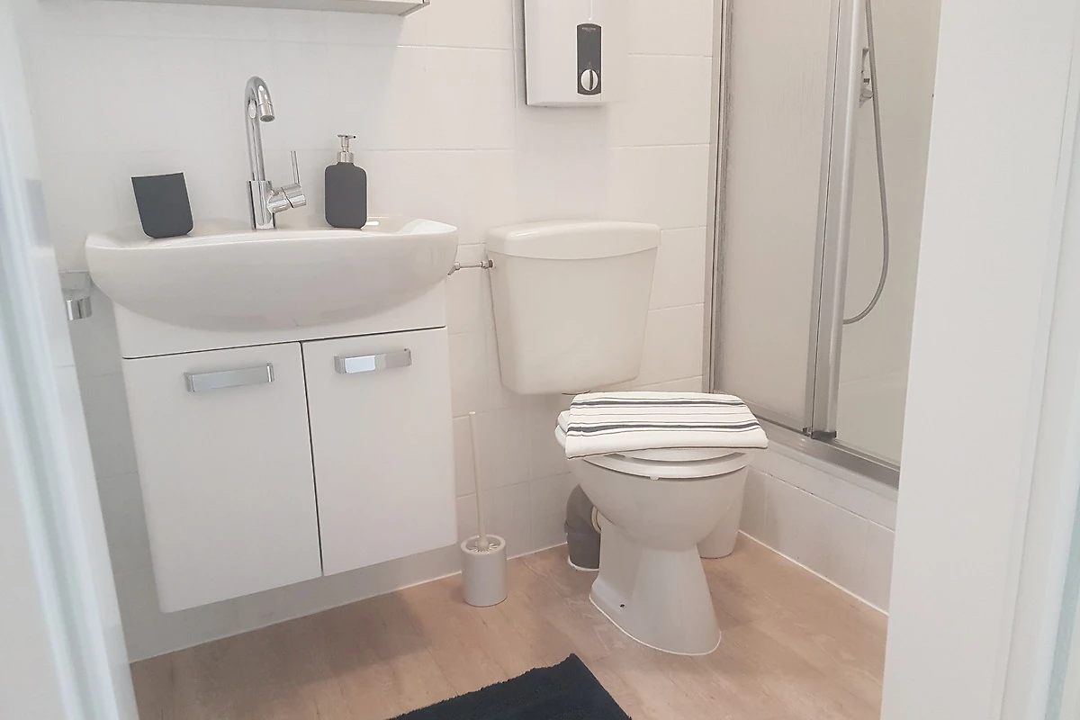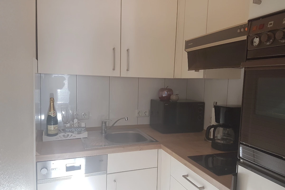 Die helle und moderne Wohnung hat neben dem Wohnzimmer ein separates Schlafzimmer mit Flachbild-TV und Einbauschrank. Im Wohnzimmer finden Sie eine gemütliche Schlafcouch. Somit ergeben sich Schlafplätze für 3 Personen. An der gemütlichen Essecke kann man nicht nur essen, es kann auch geklönt und gespielt werden. In der Küche ist vom Eierkocher, Toaster, Mikrowelle, TK- Fach mit Behältern, Backofen, Töpfen, Geschirr und Geschirrspüler alles vorhanden. Das helle Duschbad verfügt über WC, Dusche, Spiegelschrank und Haartrockner.