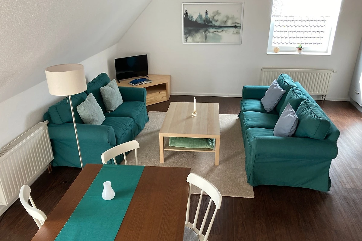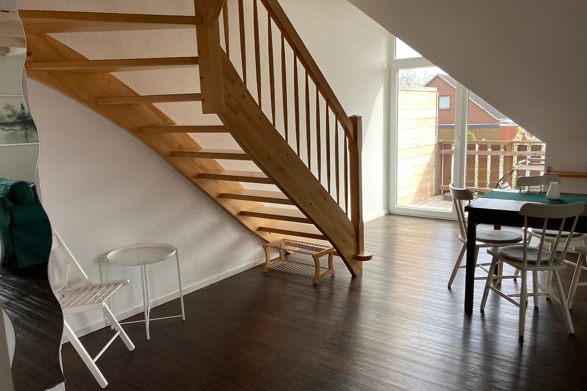 Die Ferienwohnung befindet sich in der ersten Etage eines freistehenden Hauses in einem ehemaligen Neubaugebiet. Die Innenstadt ist bequem zu Fuss oder mit dem Fahrrad zu erreichen, was einen abendlichen Kneipen- oder Restaurantbesuch bequemer macht. Eine Bäckerei, Fahrradverleih, Raddens Eis (Kulteisdiele!), Kirche und Innenstadt liegen praktisch um die Ecke. Für mitgebrachte Räder steht ein abschliessbarer Schuppen bereit.