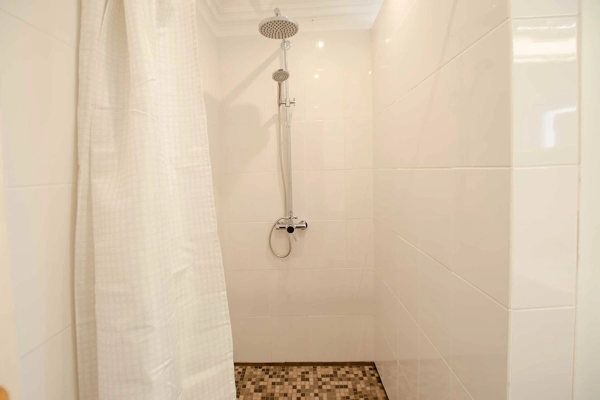 Ein Badezimmer mit Dusche/WC.