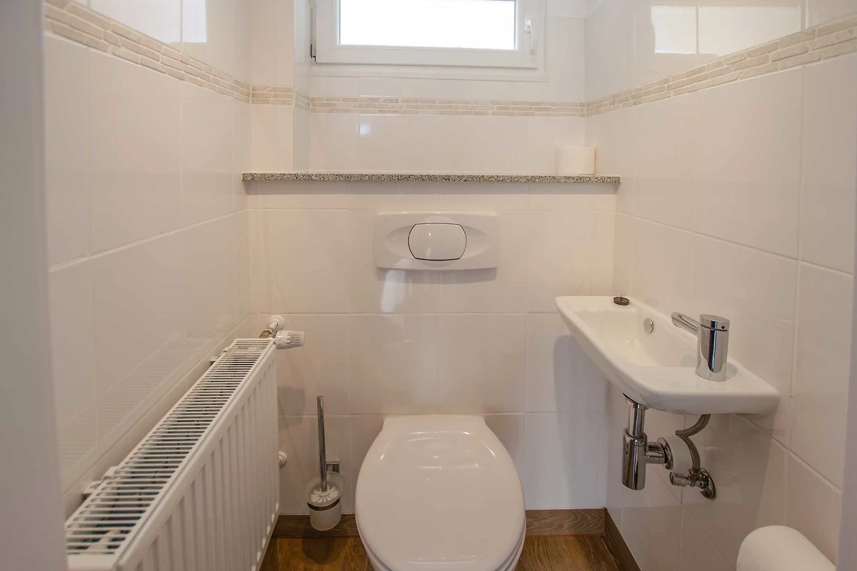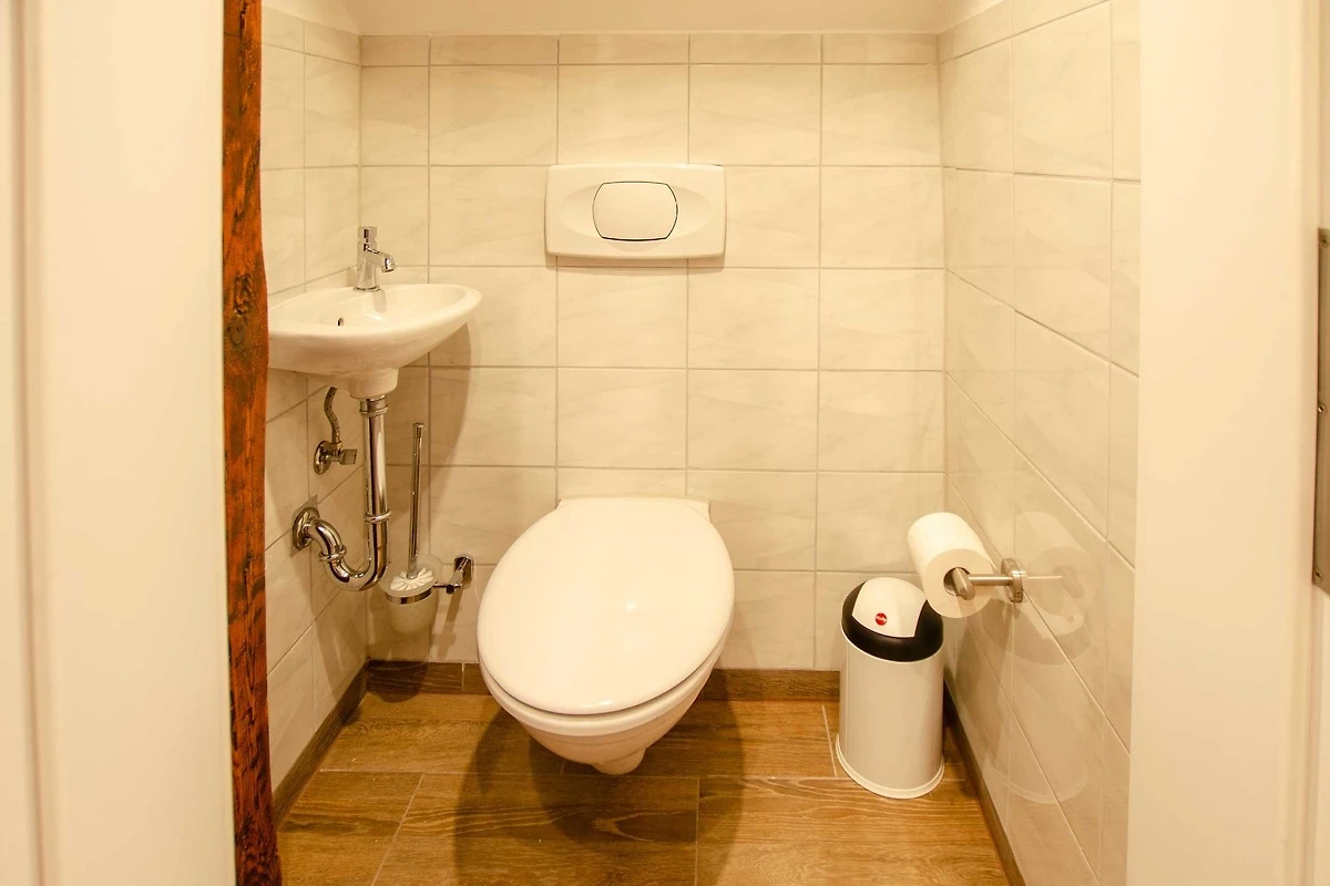 Im Treppenhaus ist ein Gäste-WC vorhanden.