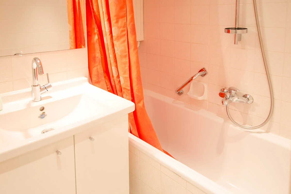 Das Badezimmer verfügt über eine Badewanne und ein WC.