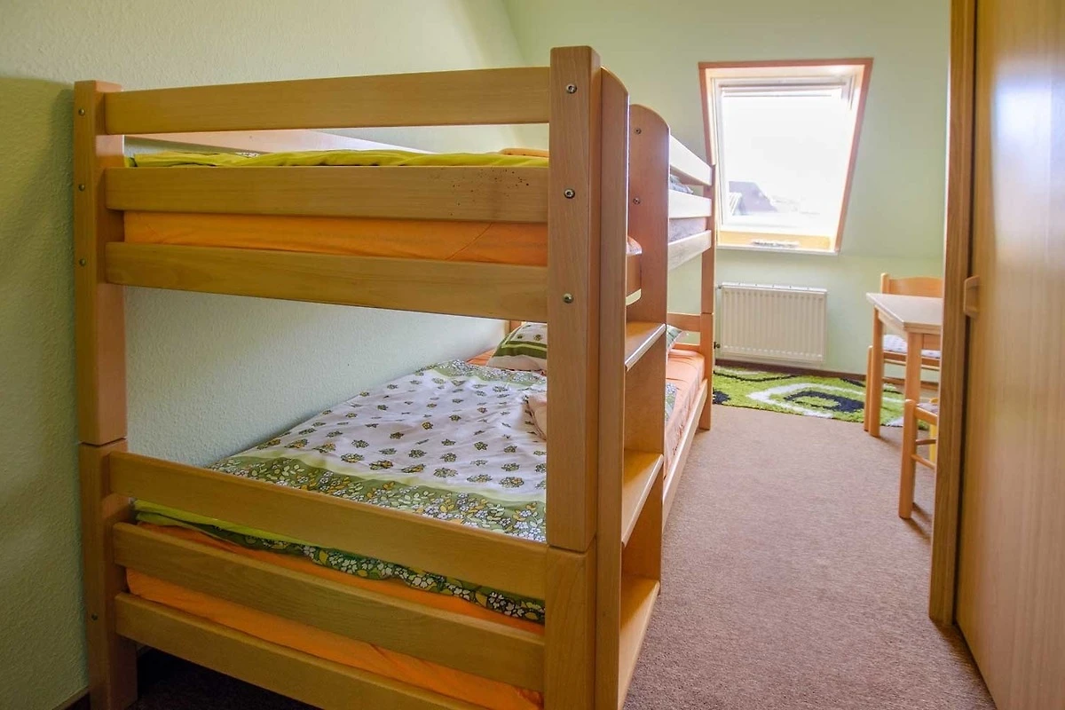 Im Kinderschlafzimmer finden Sie ein Etagenbett, Kleiderschrank und Schreibtisch.