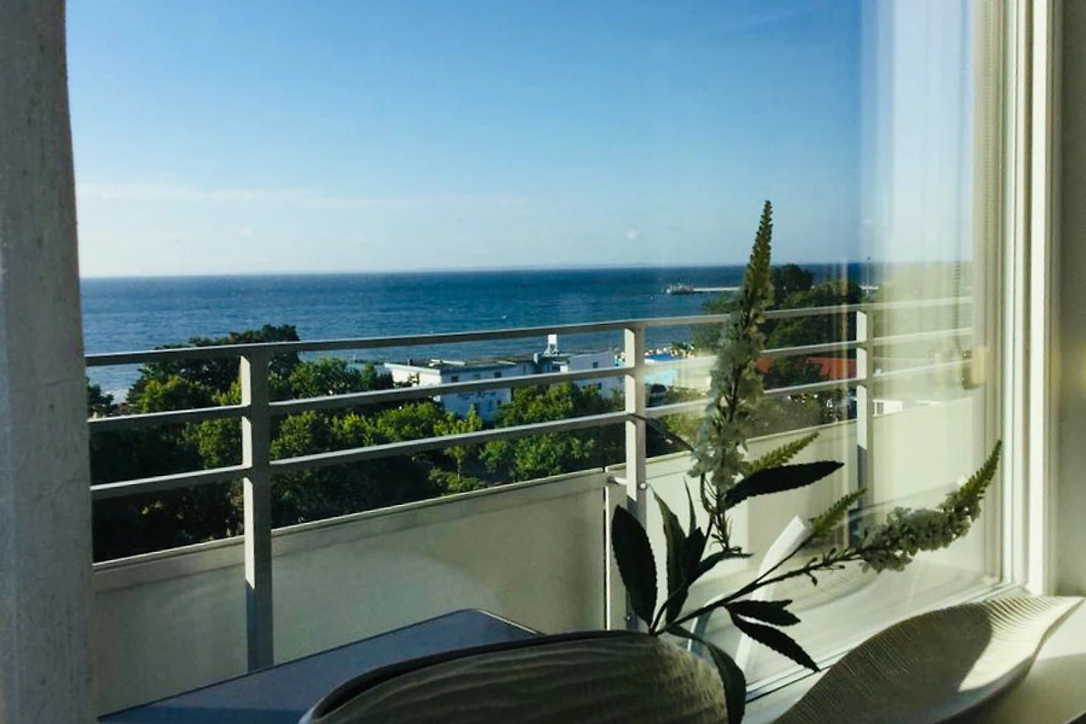 Ihr Essplatz befindet sich direkt am Panorama - Fenster, Frühstück mit direktem Meerblick ist hier inklusive! Auf dem grossen Balkon (mit Tisch, Stühlen und Sonnenschirm) können Sie abends beobachten wie die Seebrücke von Kellenhusen Stimmungsvoll beleuchtet wird.