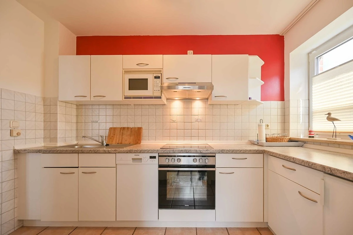 Tolle Ferienwohnung unweit vom Nordstrand Ich kann die Ferienwohnung ruhigen gewissens weiterempfehlen und würde Sie auch ein 2. mal buchen. Die Ausstattung war gut, es hat mir an nichts gefehlt, bis auf ein richtigen Meerblick, aber da die Lage und gerade mit Hund Top war, hat mir dieser auch nicht mehr ganz so gefehlt. Der Balkon ist nicht sehr groß und es finden gut 2 Personen zum sitzen Platz. Ansonsten für uns ausreichend geräumig. Das Bad war auch ausreichend und größer als wie ich es mir zuvor lt. Bilder vorgestellt hatte. Ein kleines Manko war die Reinigung, mit der ich nicht ganz zufrieden war. (Balkon und insbesondere Spinnweben obere Etage) Der Service der Vermittlungsagentur Knauf freundlich, zuvorkommend und ein reibungsloser Ablauf. Auch das Bettwäschen Set war okay und sauber.