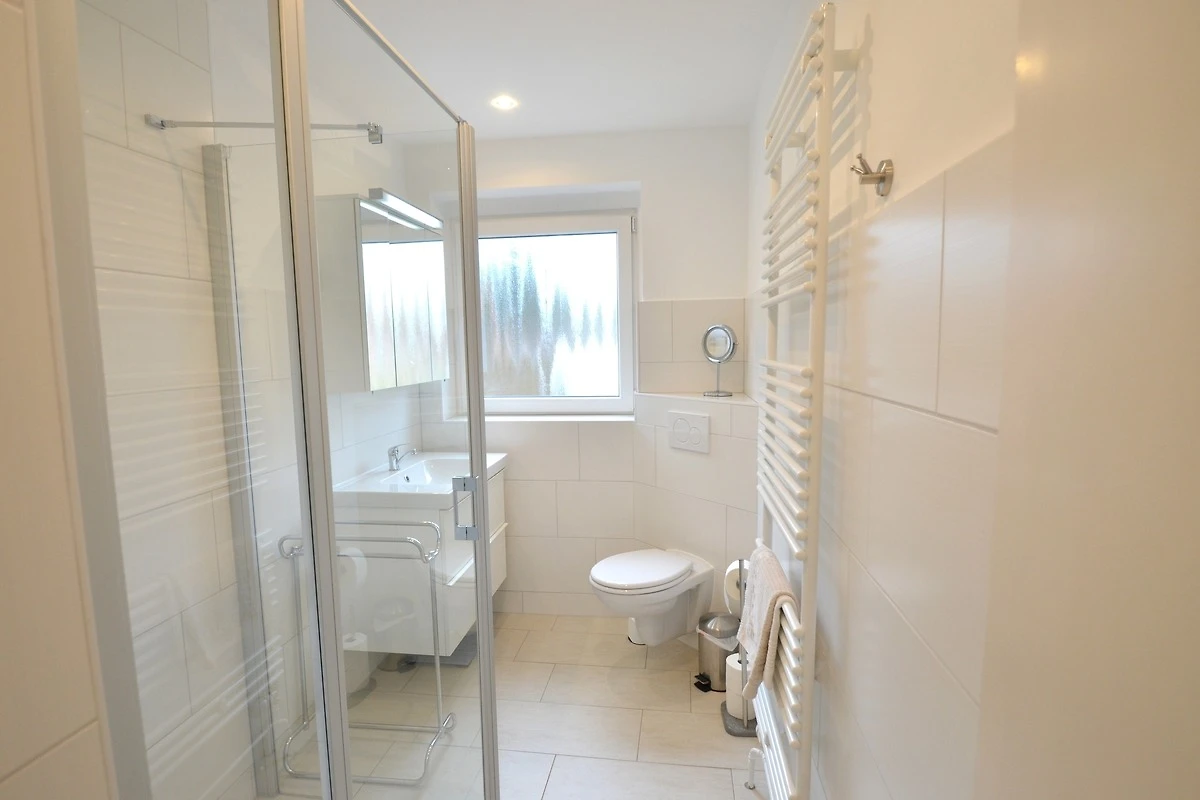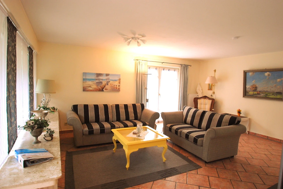 Die Wohnung "Sonnenschein unten" ist eine ca. 90 m² grosse Ferienwohnung im Erdgeschoss und bietet Platz für 2 bis 4 Personen. Sie verfügt über einen Balkon sowie eine eigene Terrasse in sonniger Süd/Westlage. Die Ausstattung umfasst einen grossen Wohnraum mit Essecke und Wohnbereich inklusive TV, Schlafraum Nr. 1 mit Doppelbett und TV, Schlafraum Nr. 2 mit zwei Einzelbetten, eine Küche, einen Flur, ein Duschbad sowie ein Gäste-WC. Auf Wunsch kann ein zusätzliches Kinderbett zur Verfügung gestellt werden. Es besteht die Möglichkeit zum Grillen.
