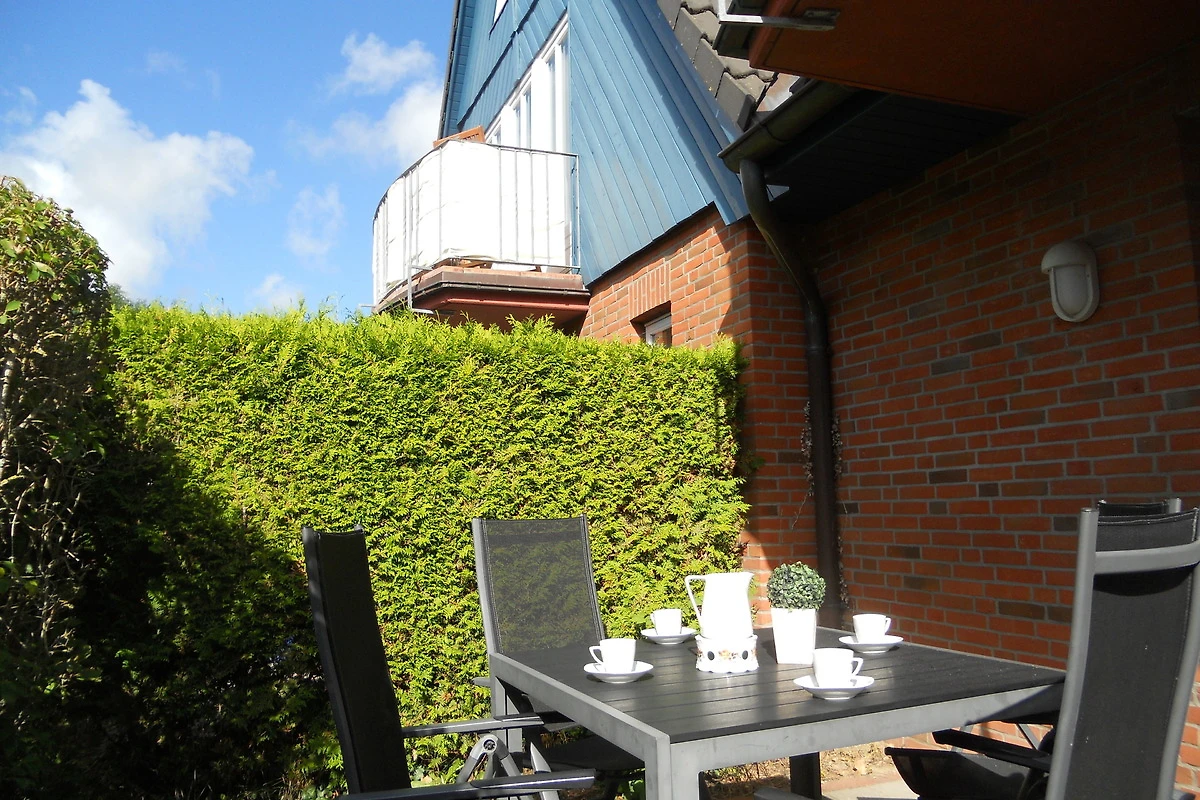 Zentral in Wyk liegt diese Wohnung in einer Ferienhausanlage auf einem grossen Grundstück mit viel Platz zum Toben und Spielen für unsere kleinen Gäste. Im Untergeschoss des Hauses finden Sie eine Sauna (gegen Gebühr), einen Ruheraum, Waschmaschine und Trockner (gegen Gebühr) zur gemeinschaftlichen Nutzung. Gerne stellen wir Ihnen ein Kinderbett und einen Hochstuihl bereit. Ein PKW- Stellplatz befindet sich direkt am Domizil.