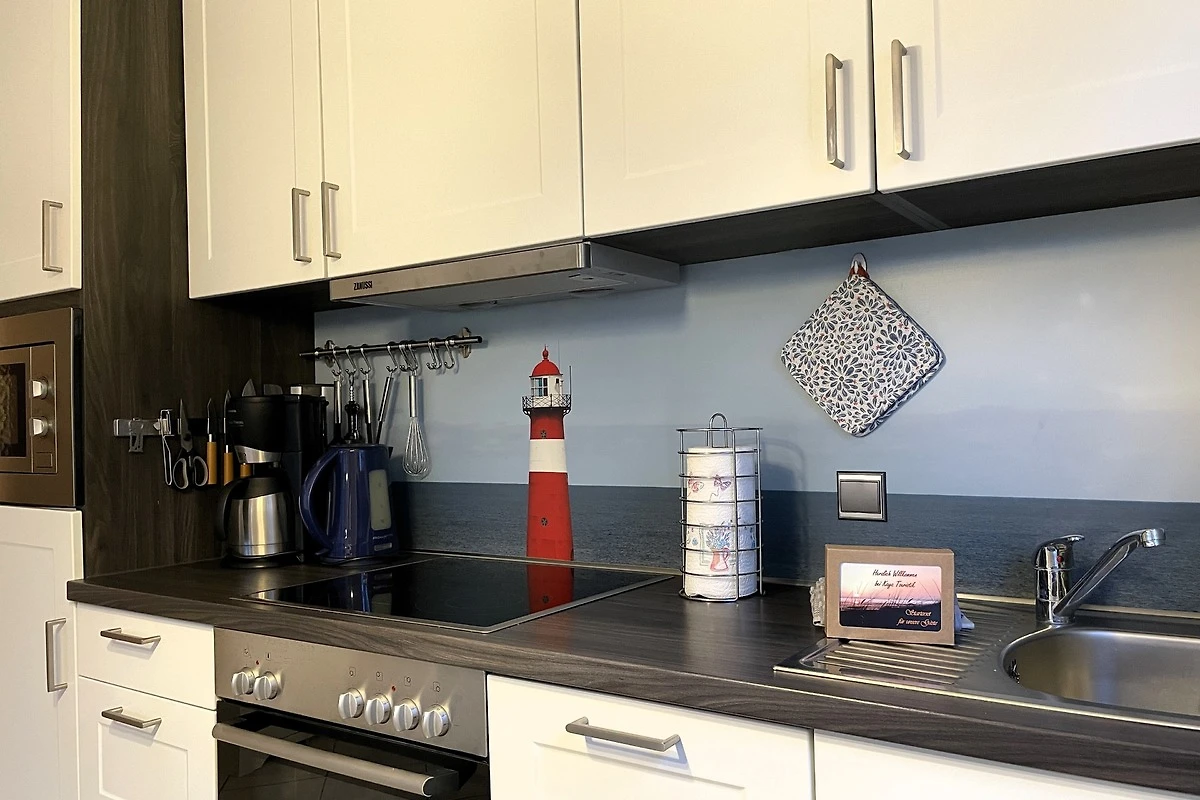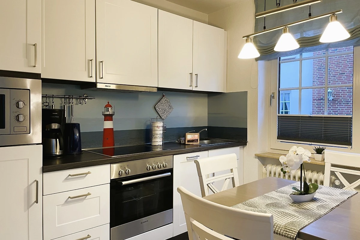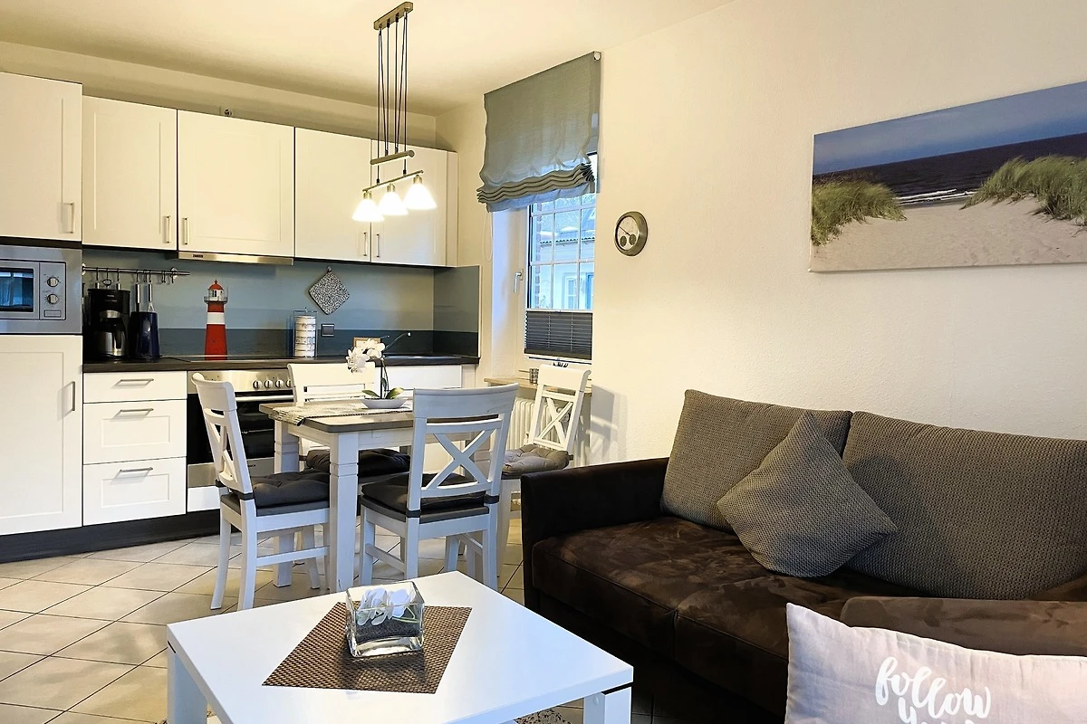 Das gepflegte Mehrfamilienhaus mit insgesamt 8 Wohneinheiten liegt strand-und zentrumsnah in der verkehrsberuhigten Friedrichstrasse. Die Wohnung Mühlenpark eignet sich daher auch hervorragend, wenn Sie ohne Auto anreisen möchten. Die Wyker Innenstadt mit den kleinen Läden, Cafés und Restaurants, die Strandpromenade und den idyllisch angelegten Mühlenpark erreichen Sie fussläufig - ebenso den Edeka-Markt, die Postfiliale und das Aqua Föhr. Im Untergeschoss des Hauses befindet sich ein Waschraum mit eigener Waschmaschine und Trockner zur kostenfreien Nutzung. Am Haus befindet sich zur gemeinsamen Nutzung ein Fahrradständer und der zur Wohnung gehörende PKW-Stellplatz. Geniessen Sie Föhr in vollen Zügen und in einer herrlichen Wohnung. Das Domizil Mühlenpark befindet sich im Erdgeschoss des Hauses und wurde geschmackvoll und mit viel Liebe eingerichtet und mit freundlichen Accessoires erstrahlt die hübsche Wohnung im charmanten Glanz. Von einem kleinen Flurbereich gelangen Sie in die weiteren Räume wie dem feinen Duschbad mit Handtuchheizung, dem freundlich wirkendem Schlafzimmer mit Fenster, Doppelbett (180x200cm) und geräumigem Kleiderschrank und dem Wohn-Essbereich mit integrierter Küche. Eine gemütliche Sitzecke mit hochwertigem Schlafsofa (1,35 x 2,00m), WLAN, einer kleinen Auswahl an Spielen und Flachbild-TV ist harmonisch abgestimmt auf den hellen Essbereich und die gut ausgestattete Küchenzeile, die mit Backofen, Ceranfeldherd, Mikrowelle, Geschirrspüler, Kaffeemaschine, Wasserkocher, Mixer, Eierkocher und vielem mehr zum Kochen einlädt. Der Balkon (Süd-Ost)ist teilüberdacht und in Richtung Mühlenpark gelegen. Wir wünschen viel Freude bei Ihrer Urlaubsplanung und können unser Domizil Mühlenpark bestens für einen Urlaub zu Zweit empfehlen!