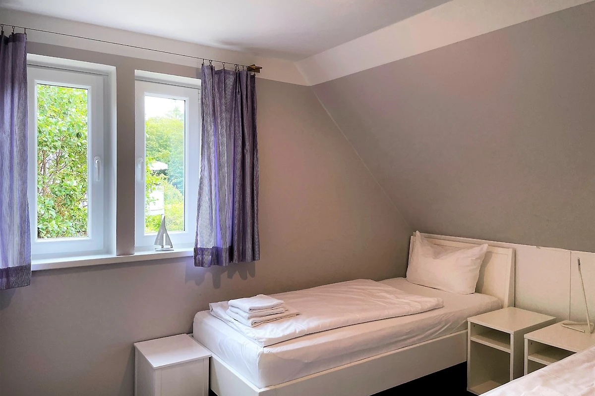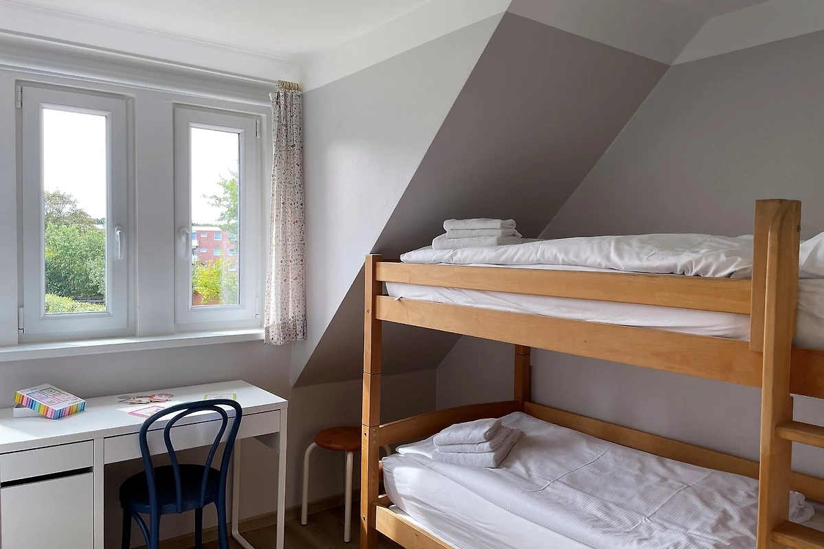 In der Helgoländer Strasse 9 befindet sich in ruhiger Lage unweit des Wyker Stadtwaldes mit dem Abenteuerspielplatz Löwenhöhle das Haus Stünkel mit seinen 2 Haushälften. Beide Domizile sind jeweils für bis zu 6 Personen ausgerichtet und hochwertig ausgestattet. Der Carport befindet sich direkt vor dem Haus und die Terrassen mit Gartenmöbeln und Strandkorb (von ca. April bis Oktober) befinden sich auf der Rückseite des Hauses und sind jeweils vom Wonraum aus zu betreten. Der gemeinschaftliche Garten ist einzezäunt, so dass Sie Ihre Kinder unbesorgt draussen spielen lassen können. Es fehlt an Nichts und kurze Wege zum Strand, Abenteuerspielplatz und Einkauf runden dieses schöne Objekt ab. In unserer allergikerfreundlichen Haushälfte Stünkel links (ca. 92 m) können Sie herrliche Urlaubstage verbringen. Das Haus wurde für sechs Personen konzipiert. Beim Bau wurde auf ökologische Kriterien besonders geachtet, Holz, Kork und Marmor bilden den Fussbodenbelag. Das helle Erdgeschoss unterteilt sich in einer vollausgestatteten Küche mit Induktionsherd, Backofen, Geschirrspüler und vielem mehr. Hier angrenzend befindet sich die gemütliche Essgruppe mit ausziehbarem Tisch und dem hübschen Wohnraum mit WLAN, Flachbild-TV, Blueray- Player und Kamin. Von hier gelangen Sie auf die schöne, gepflegte Südterasse mit Gartenmöbeln und Strandkorb ( ca. von April bis Oktober) und gemeinschaftlichem Garten. Des Weiteren befindet sich im Erdgeschoss ein hellgefliestes Duschbad. Über eine breite Treppe gelangen Sie in das Obergeschoss mit einem Badezimmer mit Dusche, einem Doppelwaschtisch und Waschmaschine sowie Trockner, die Ihnen zur kostenfreien Nutzung zur Verfügung stehen. Hier befinden sich 3 Schlafräume, die für erholsame Nächte sorgen. Eines ist mit einem Doppelbett (180x200cm) und Kleiderschrank ausgestattet und das zweite verfügt über zwei Einzelbetten (90x200 cm) und Kleiderschrank. Der dritte Schlafraum mit Kleiderschrank und Etagenbett (90x200 cm) besitzt zusätzlich einen Schreibtisch. Das Haus eignet sich hervorragend für Familien!