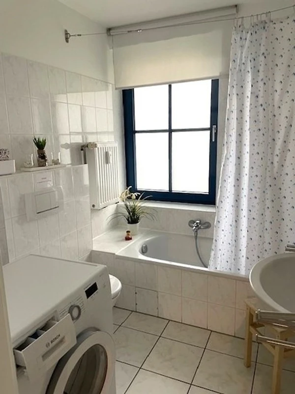 Das Bad (4,4 m²) ist ausgestattet mit Badewanne und WC. Hier steht auch die Waschmaschine.