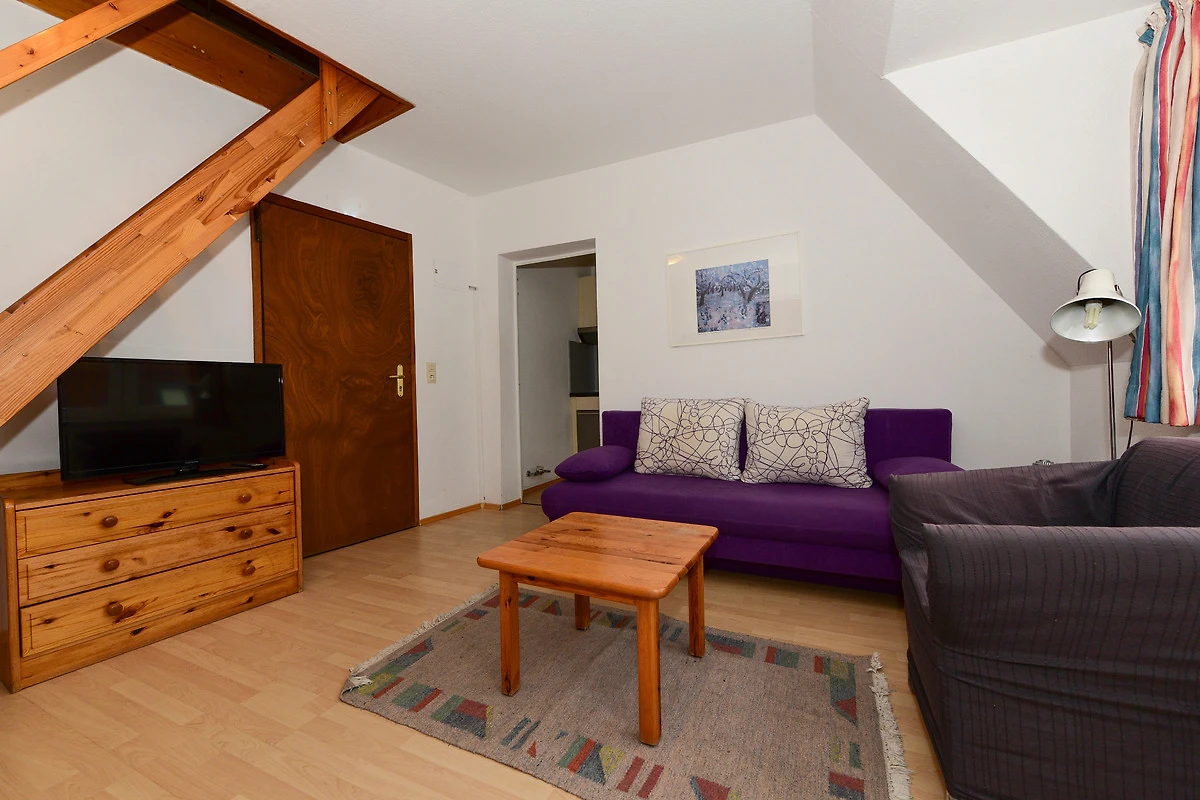Der gemütliche Wohnbereich mit Sitzecke und integrierter Küche lädt zu entspannten Stunden ein.