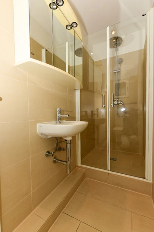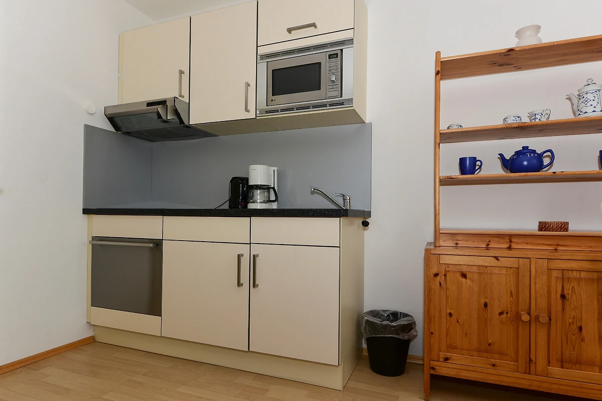 Die integrierte Küchenzeile bietet alles, was Sie für eine schnelle Mahlzeit benötigen, und das Duschbad ist modern und praktisch.