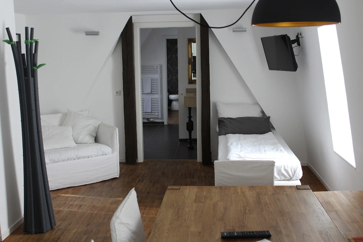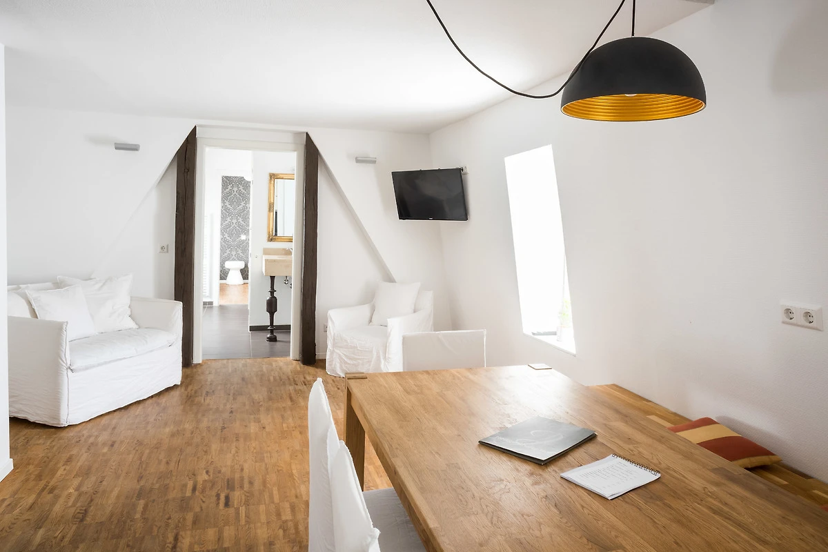 Die modernen und bequemen Apartments liegen im Innenhof des Heiligenthaler Hofes. Der dreigeschossige Dreiflügelbau mit Gesimsgliederung und Ecklinsen erhielt seinen Namen von dem reichen Bierbauern Franz Josef Heiligenthal, der das Gebäude 1786 gemeinsam mit seiner Frau erworben hat, die ebenfalls aus einer Brauerfamilie stammte.