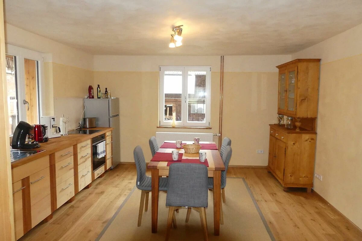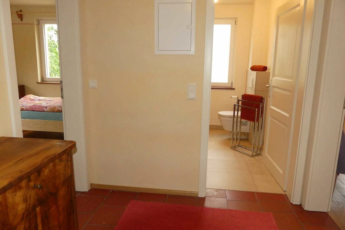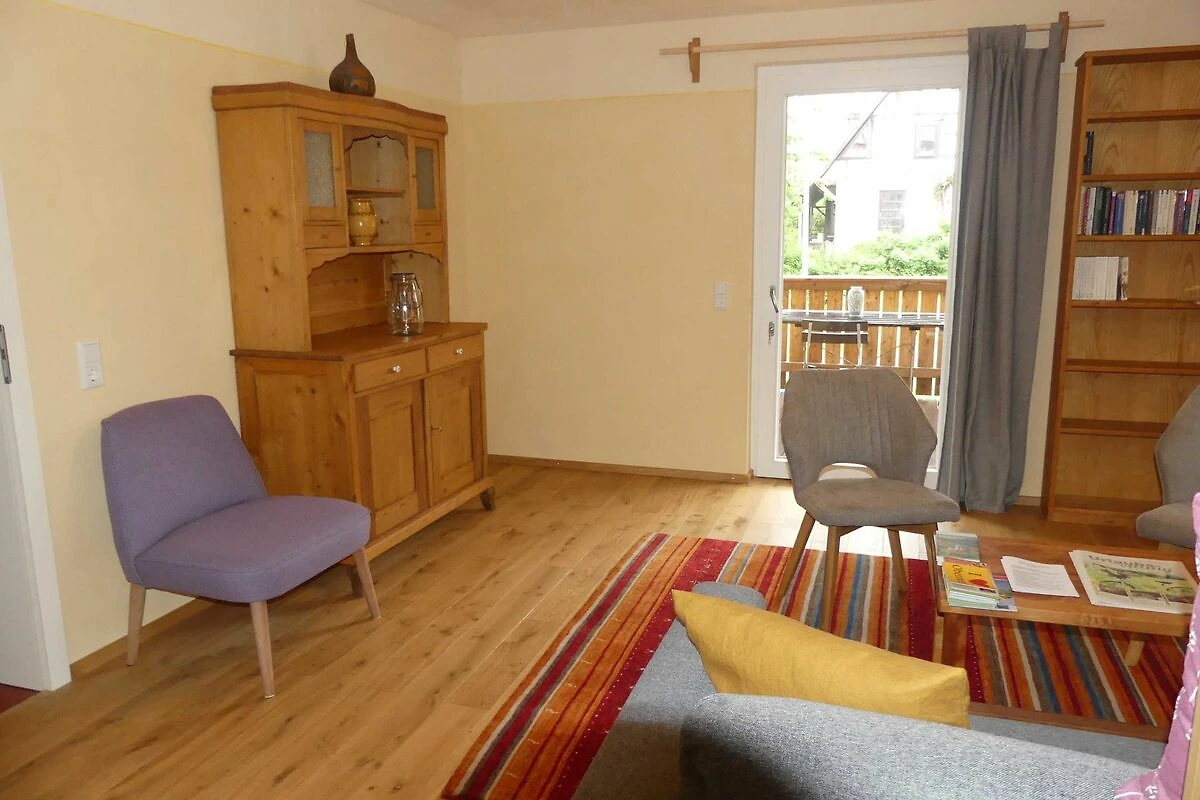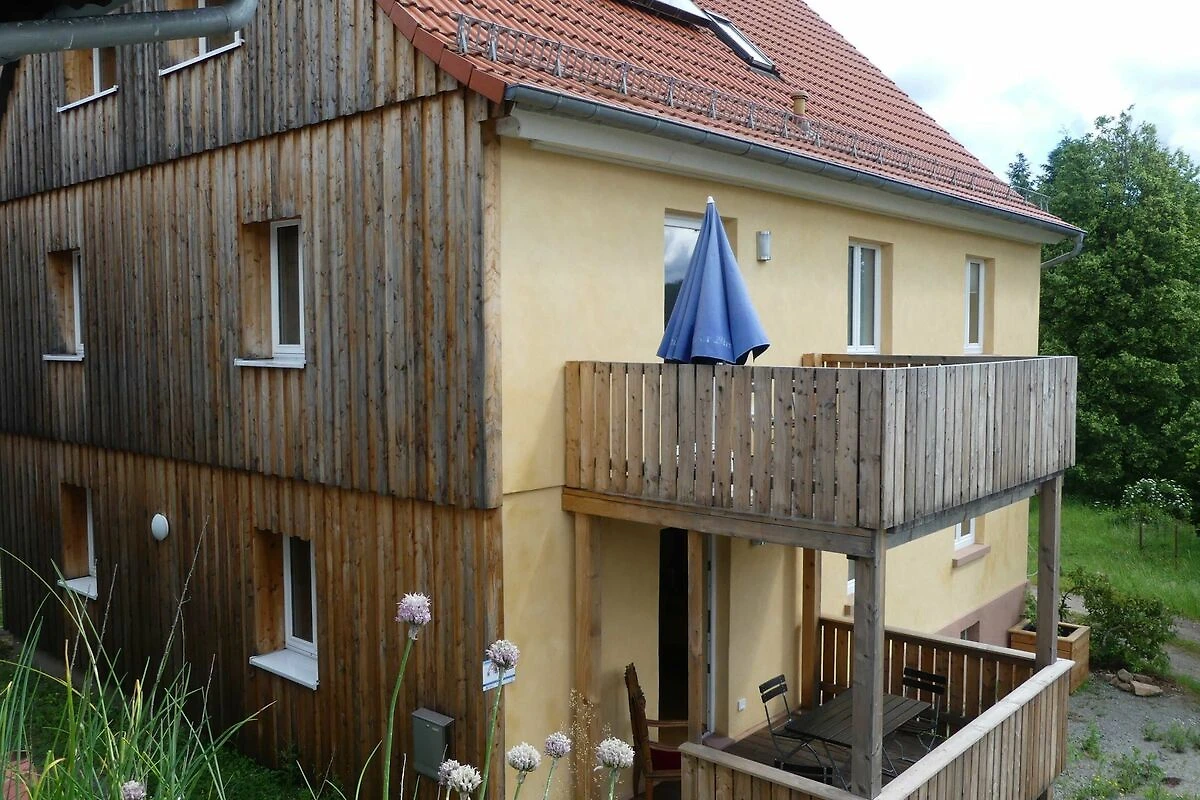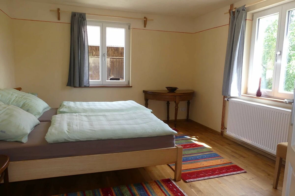 Unsere 70 qm grosse Ferienwohnung befindet sich abseits vom Durchgangsverkehr im ersten Stockwerk eines ökologisch grundsanierten ehemaligen Bauernhauses. Diese Wohnung kann über den Balkon ebenerdig und somit barrierefrei auch mit einem Rollstuhl erreicht werden.