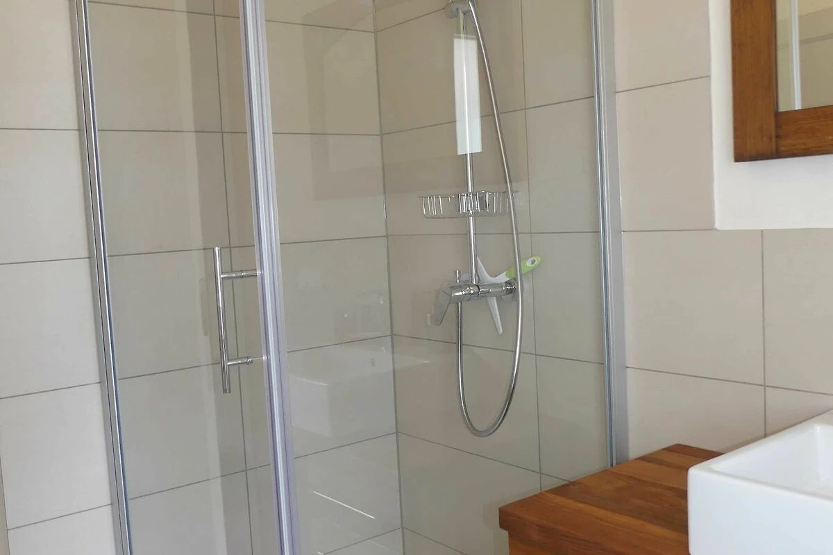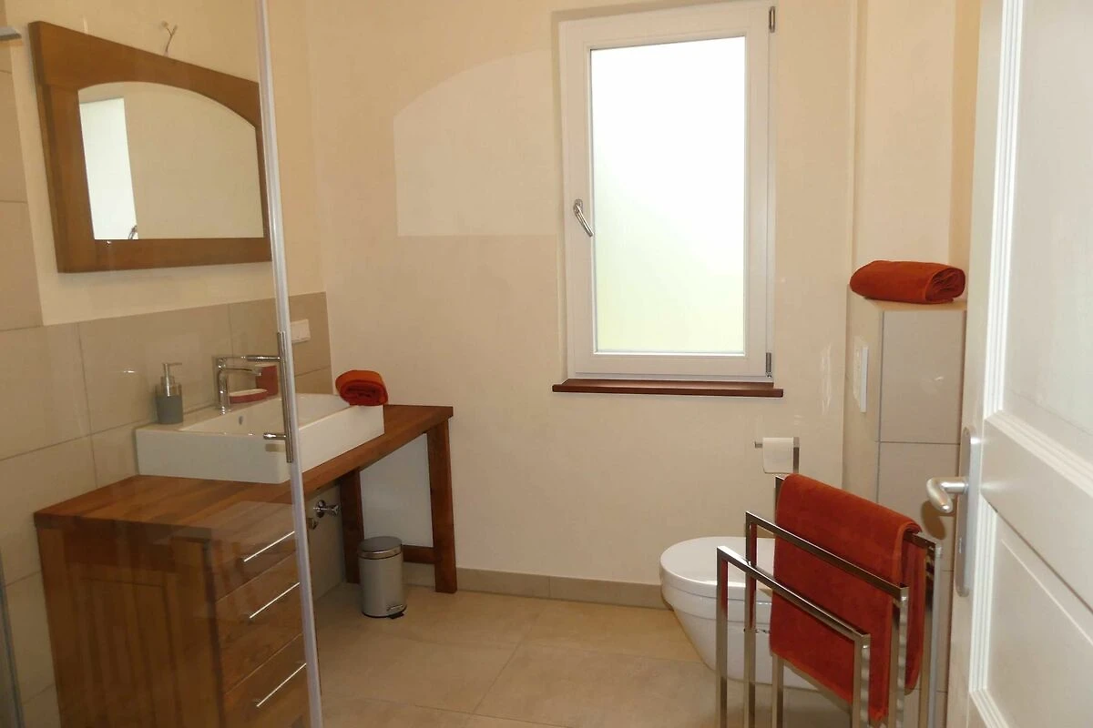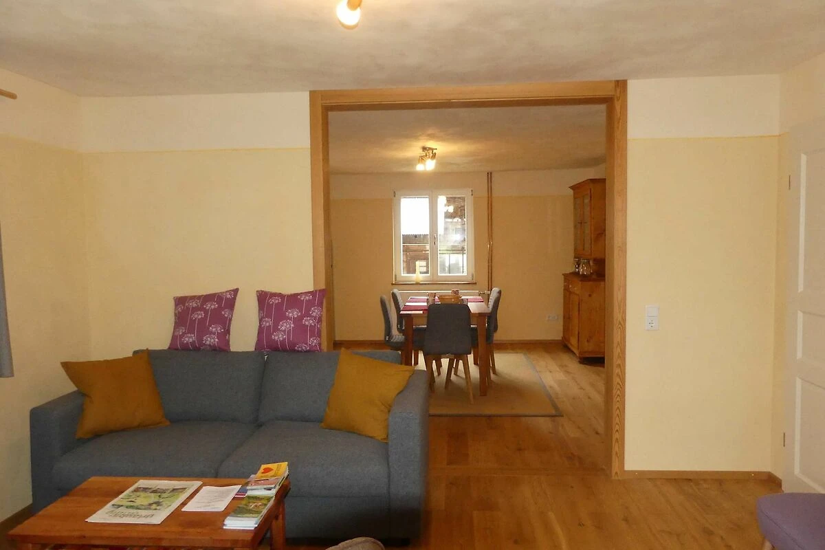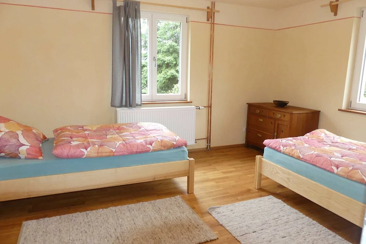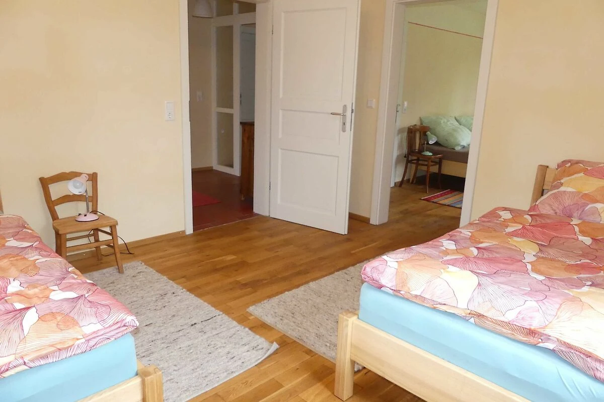 Unsere 70 qm grosse Ferienwohnung befindet sich abseits vom Durchgangsverkehr im ersten Stockwerk eines ökologisch grundsanierten ehemaligen Bauernhauses. Diese Wohnung kann über den Balkon ebenerdig und somit barrierefrei auch mit einem Rollstuhl erreicht werden.
