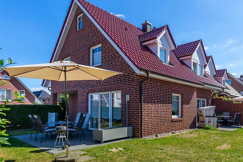 Die Haushälfte befindet sich am Ortseingang Boltenhagens, mitten im Wohnpark Ostseepark. Sie möchten mit 2 Familien anreisen? Dann bietet sich die zweite Haushälfte Sanddorn 14a ideal mit an.