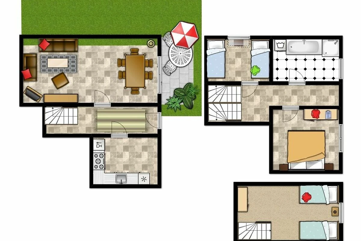 Auf insgesamt drei Ebenen erstreckt sich dieses familienfreundliche 4-Zimmer-Ferienhaus mit einer Wohnfläche von knapp 85qm und bietet Platz für bis zu sechs Gäste + Kleinkind.