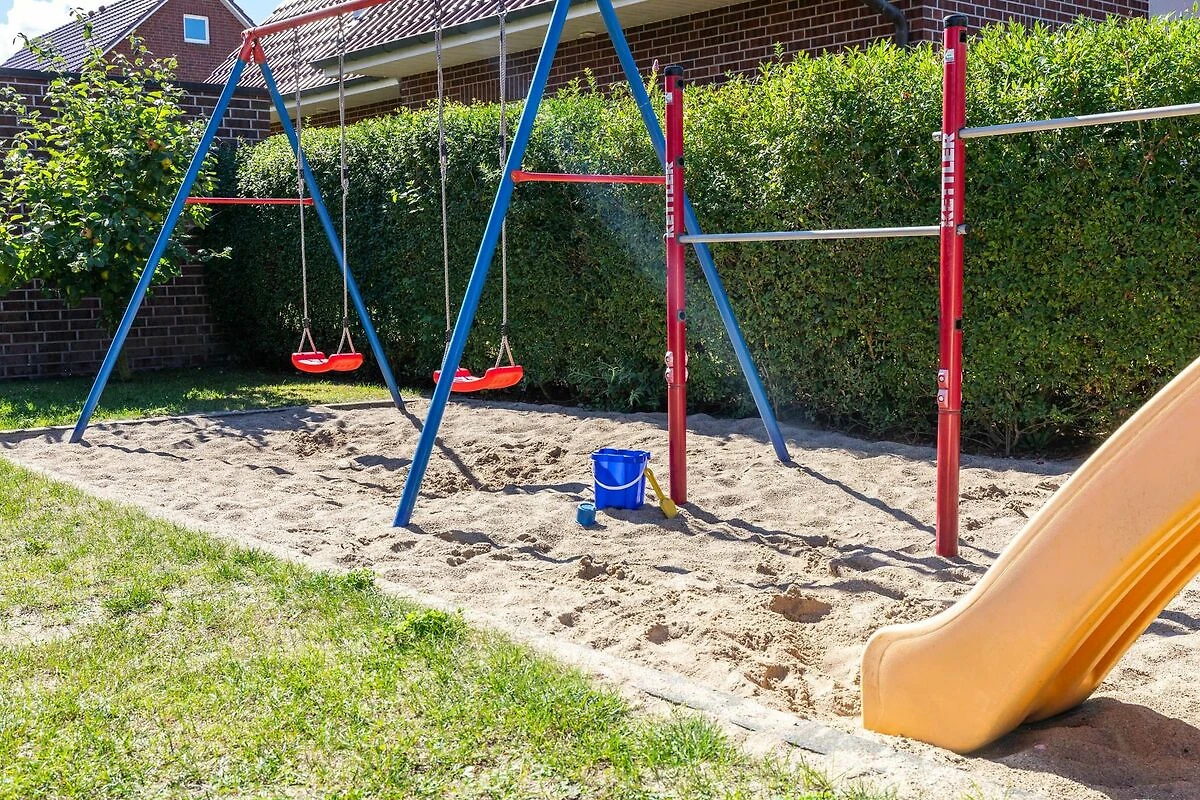 Der feine Sandstrand ist nur rund 550m bis 600m entfernt. Auch bis zu dem kleinen Spielplatz am Eingang zum Urlauberdorf sind es nur wenige Schritte.