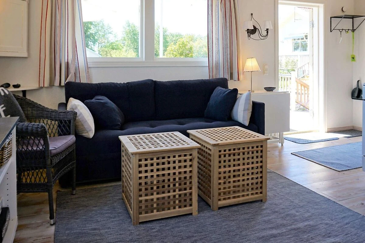 In der Sommeridylle von Onsala bei Gottskär in Halland, mit seinem gemütlichen Hafen und herrlichen Bademöglichkeiten im Meer, liegt dieses gemütliche Ferienhäuschen mit Meerblick und angenehmer Terrasse. Es sind nur 400 m zum nächsten Badesteg und nur 800 m bis zu einem feinen Sandstrand. Außen steht Ihnen ein üppig bewachsener und gepflegter Garten mit Rasen und Terrasse zur Verfügung, auf der Sie Ihr Frühstück oder Abendessen gemeinsam im Freien genießen können. Gartenmöbel und ein Sonnenschirm sorgen für Schatten, wenn es heiß ist. Der Eigentümer des Hauses wohnt auf demselben Grundstück, aber Sie haben Ihren eigenen Teil des Gartens sowie Ihren eigenen Parkplatz und Eingang zur Verfügung. Das Ferienhaus fühlt sich geräumig und luftig an, da es bis oben zum First offen ist. Große Fenster mit Blick von innen sowohl auf die Veranda als auch bis zum Meer am Horizont. Das große Ferienhaus hat eine offen kombinierte Küche und ein Wohnzimmer. Die Küche hat eine schöne Essecke, Kühlschrank mit Gefrierfach, Mikrowelle, Herd, Kaffeemaschine und Wasserkocher. Für die Kleinsten gibt es einen Hochstuhl. Außerdem Schlafsofa für 2 Personen (150x190 cm). Es gibt ein Schlafzimmer mit zwei Einzelbetten (je 90 cm Breite), die man auf Wunsch auch zu einem Doppelbett zusammenstellen kann. Im Schlafzimmer gibt es Staufläche auf einem Regal sowie Kleiderschränke und einen Ganzkörperspiegel. Das Häuschen bietet Platz für maximal 4 Personen und ist am besten für 2 Erwachsene mit 2 Kindern geeignet. Reisebettchen auf vorherige Anfrage beim Servicebüro möglich. Nicht zu vermieten an Jugendliche unter 25 Jahren! Zwei Fahrräder für Erwachsene mit Gepäckträger stehen zur Verfügung (ohne Gewähr). Mit dem Fahrrad sind es nur 7 Minuten nach Gottskär und zum Hafen. Hier gibt es Restaurants, Bademöglichkeiten, Yachthafen, Eiskiosk und in manchen Sommern auch After Beach. Machen Sie auch einen Ausflug nach Lerkil und kaufen Sie frische Meeresfrüchte direkt vom Fischerboot. In der Umgebung gibt es schöne Wanderwege und ein gut besuchtes Naturschutzgebiet. Im Umkreis von 3 km gibt es außerdem 4 Golfplätze. Wenn Sie die Städte rund um die Unterkunft erkunden möchten, sind es 10 Minuten nach Kungsbacka und zum beliebten Kungsmässan mit einer Vielzahl von Geschäften. Das Hede Fashion Outlet liegt 15 Minuten vom Cottage entfernt und Göteborg mit Liseberg erreichen Sie mit dem Auto in nur 30 Minuten.
