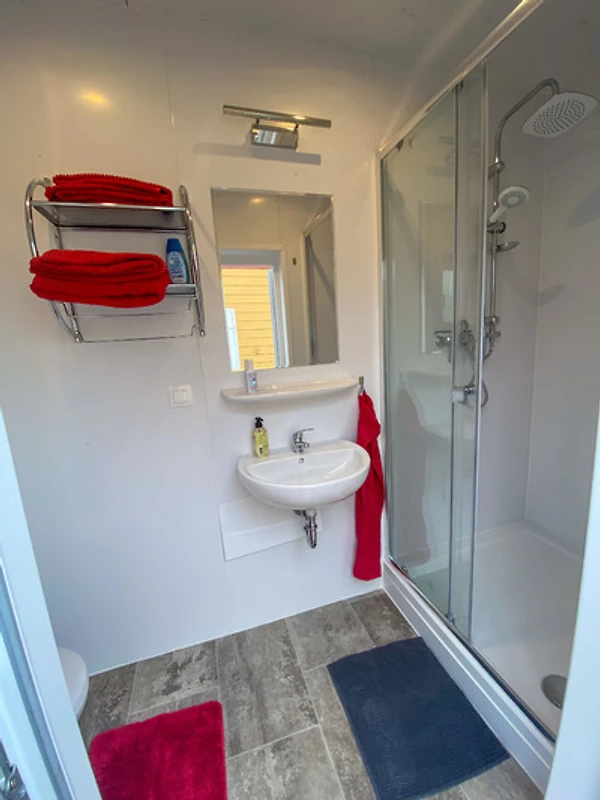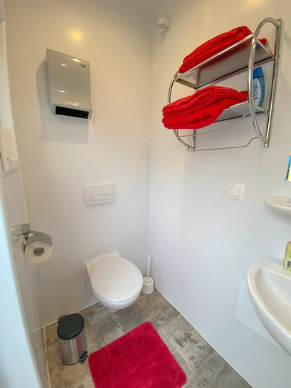 - jedes Fass hat seine eigene Sanitäranlagen mit Dusche, WC und Waschbecken