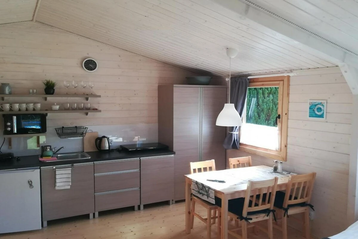 Das gemütliche, einstöckige Ferienhaus besteht aus einem Wohnzimmer mit Küche, einem Schlafzimmer mit Doppelbett und einem Badezimmer mit Dusche. Das Wohnzimmer verfügt über ein Doppelschlafsofa, einen Tisch und einen Fernseher. Elektroheizung. Das Haus verfügt über eine überdachte Terrasse mit Gartenmöbeln. WLAN ist verfügbar.