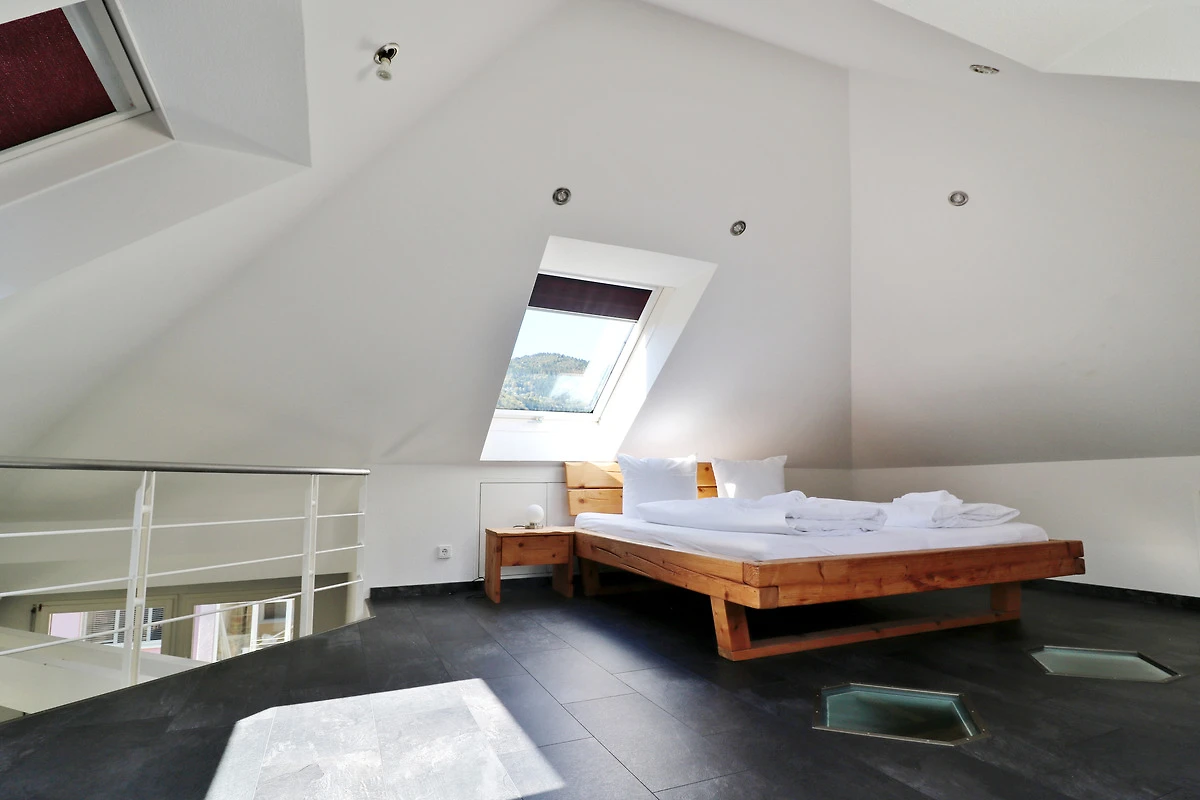 - Eine offene Galerie mit einem Doppelbett (180cm x 200cm)