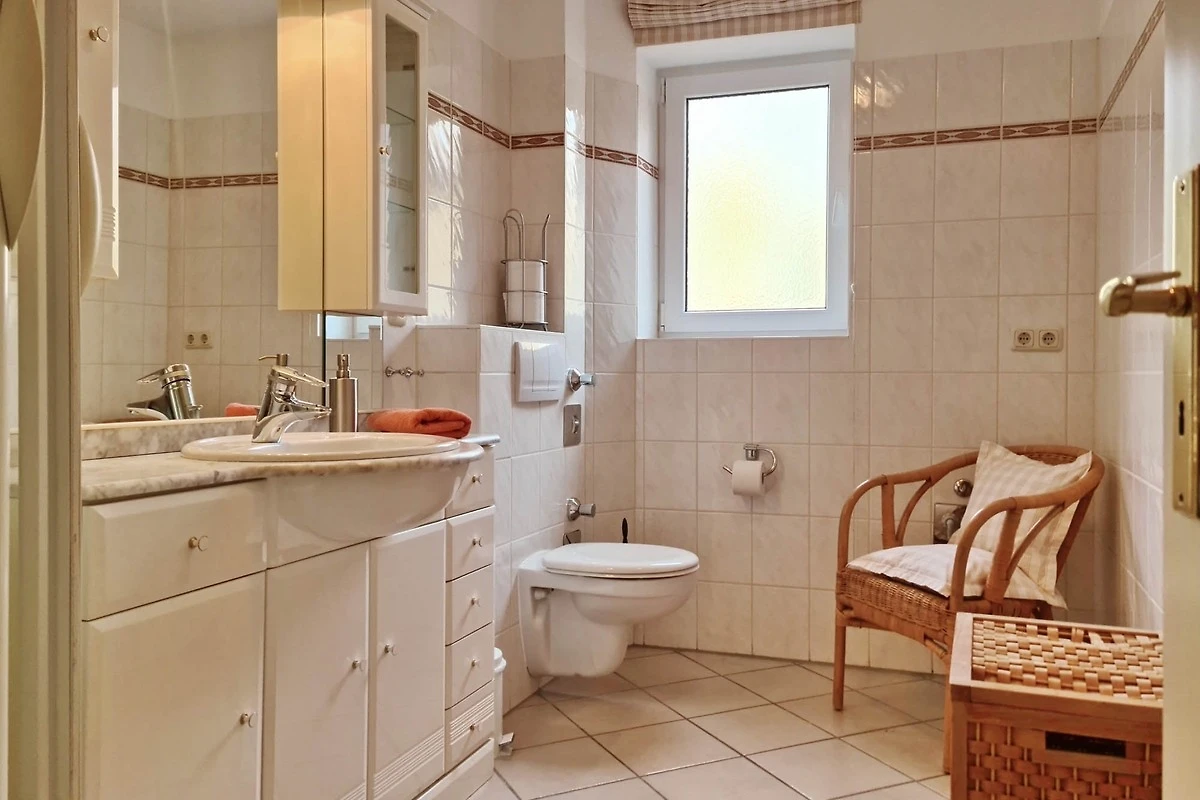 Die Wohnung " Burgkajüte" liegt im Erdgeschoss . Sie ist 75 m² gross und für bis zu 3 Personen geeignet. Die Austattung umfasst: