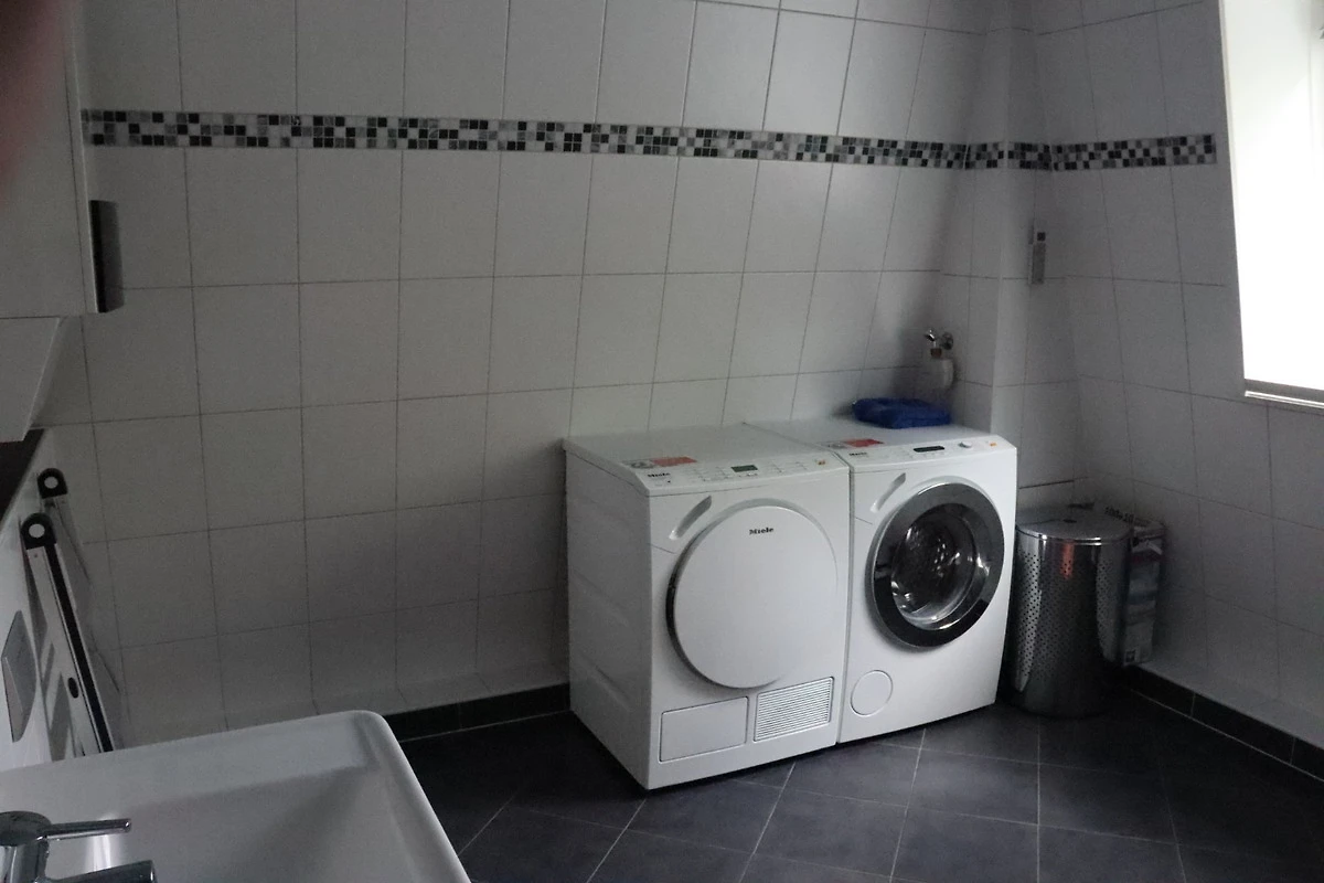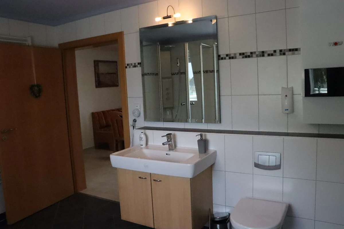 Die Ferienwohnung besteht aus einem gemütlichen, offenen Wohnzimmer (ohne Tür zum Flur) mit einer ausziehbaren Schlafcouch (Liegefläche 1,60m) und einem Schlafzimmer mit einem Boxspring-Doppelbett und einem grossen Kleiderschrank, ein Badezimmer mit grosser Dusche sowie einer voll ausgestatteten Küche und einem separaten Essbereich.