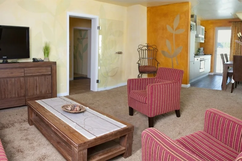 * geräumiges Wohnzimmer mit Doppelschlafcouch, SAT-TV Flachbildschirm, DVD, Radio,