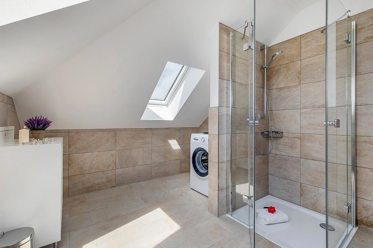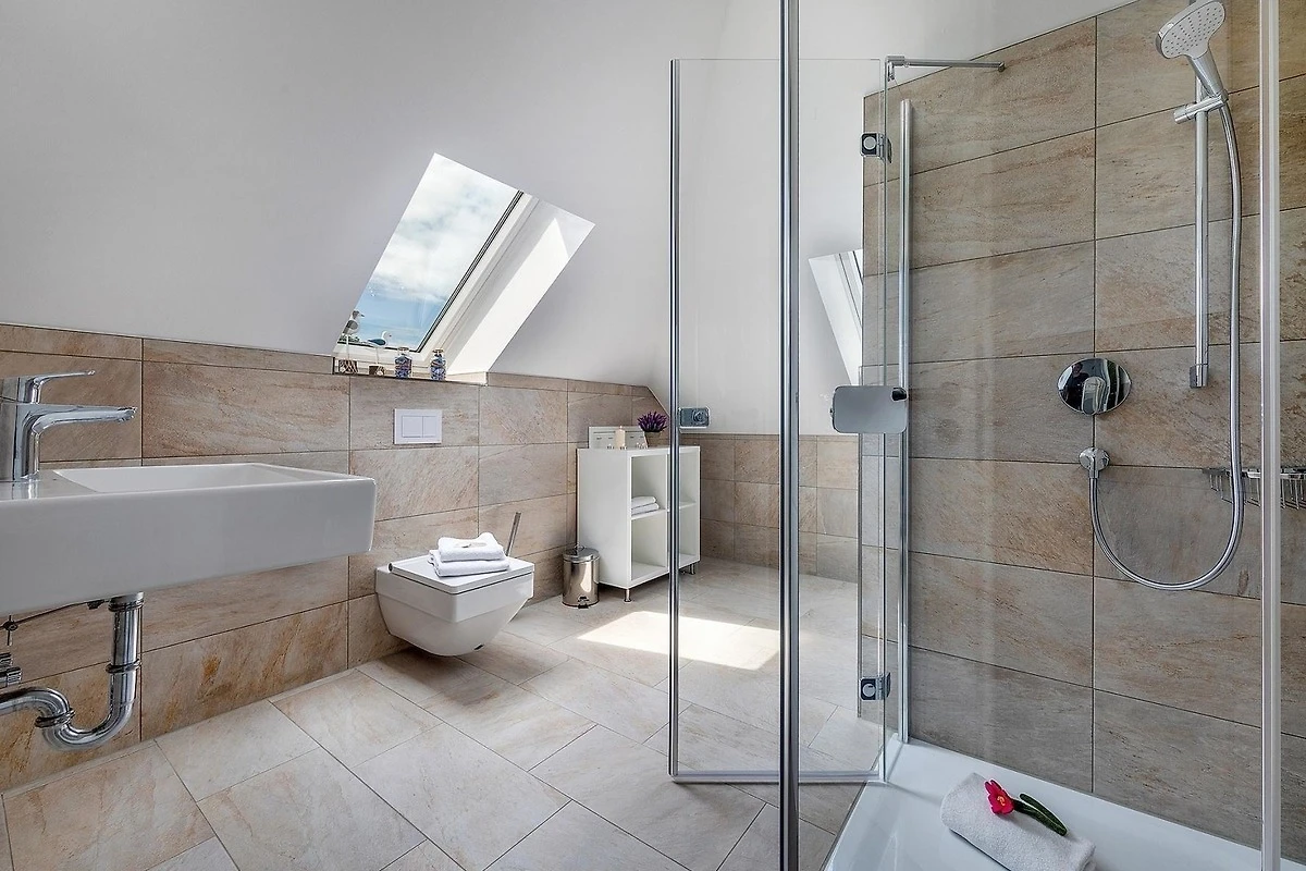 Das Badezimmer ist mit einer bodengleichen Dusche und einem Kosmetikspiegel ausgestattet, während Fussbodenheizung für wohlige Wärme sorgt. Zur Unterhaltung stehen ein TV und eine HiFi-Anlage bereit. WLAN ist ebenfalls vorhanden. Allergikerfreundliche Möbel, ein Haartrockner und Bügelutensilien runden das Angebot ab. Die Wohnung ist ein idealer Ort für entspannte Ferien und bietet alle Annehmlichkeiten für einen angenehmen Aufenthalt.