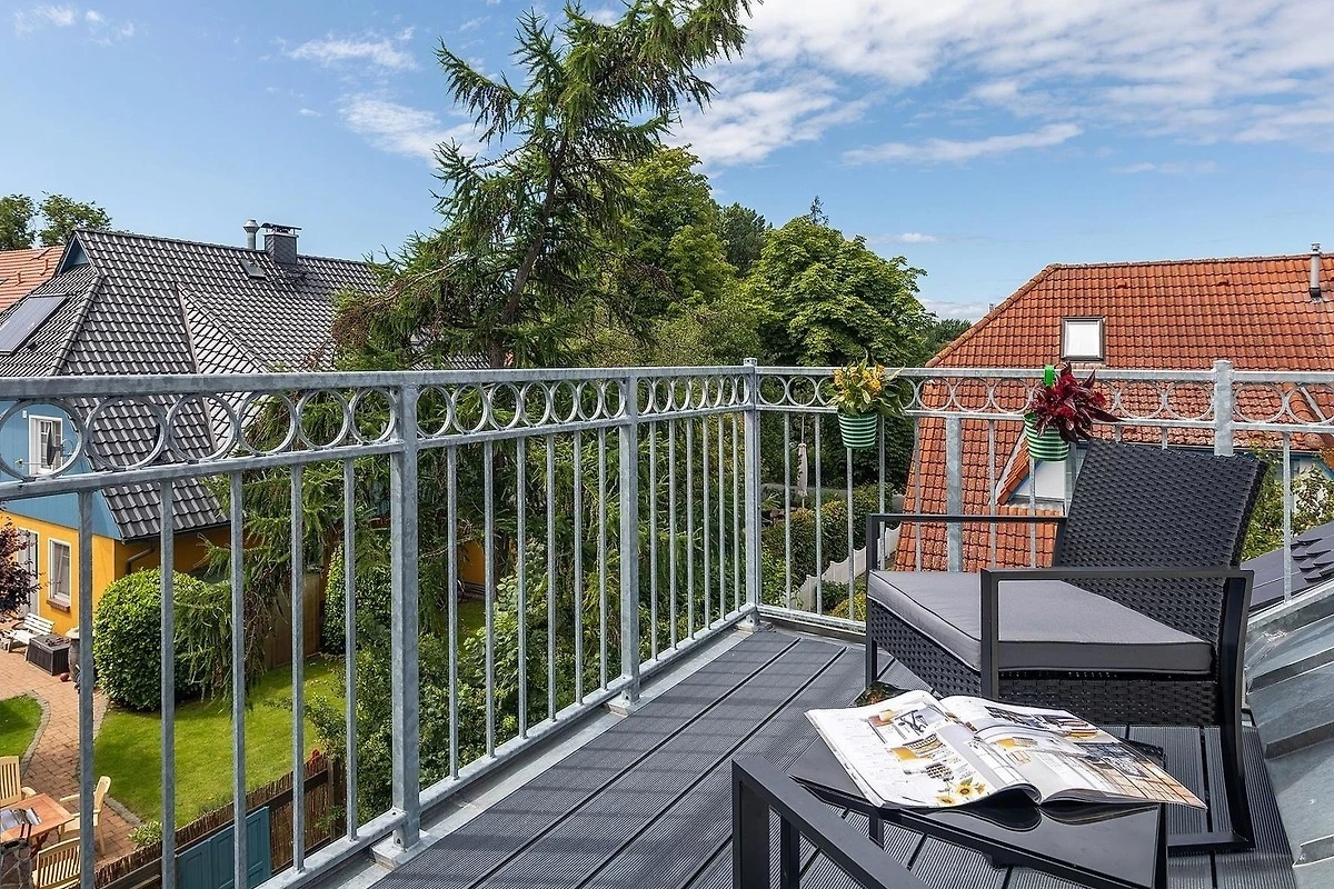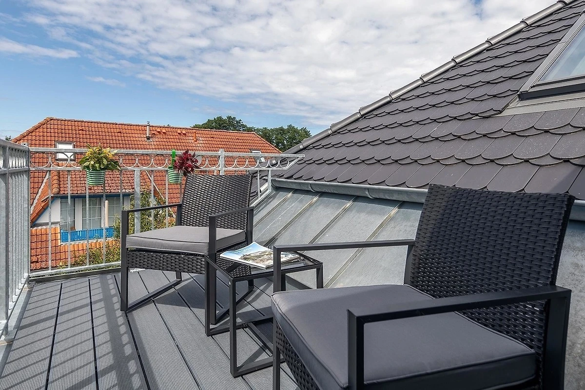 Die Ferienwohnung bietet einen gemütlichen Balkon, der zum Entspannen einlädt. Hier kann die Sonne genossen oder der Tag mit einem Glas Wein ausklingen. Der private Aussenbereich sorgt für eine ruhige Atmosphäre, ideal für erholsame Stunden im Freien. Perfekt für alle, die dem Alltag entfliehen möchten und die Natur schätzen.