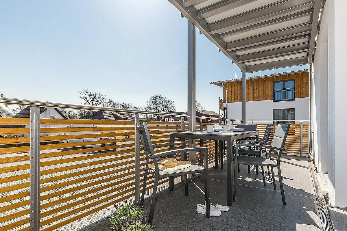 Die Ferienwohnung bietet einen privaten Balkon, der den perfekten Rückzugsort zum Entspannen und Geniessen der frischen Luft darstellt. Hier kann man den Tag mit einem Frühstück in der Sonne beginnen oder den Abend bei einem Glas Wein ausklingen lassen. Der Balkon lädt dazu ein, die Umgebung zu erkunden und die Ruhe der Natur zu erleben.