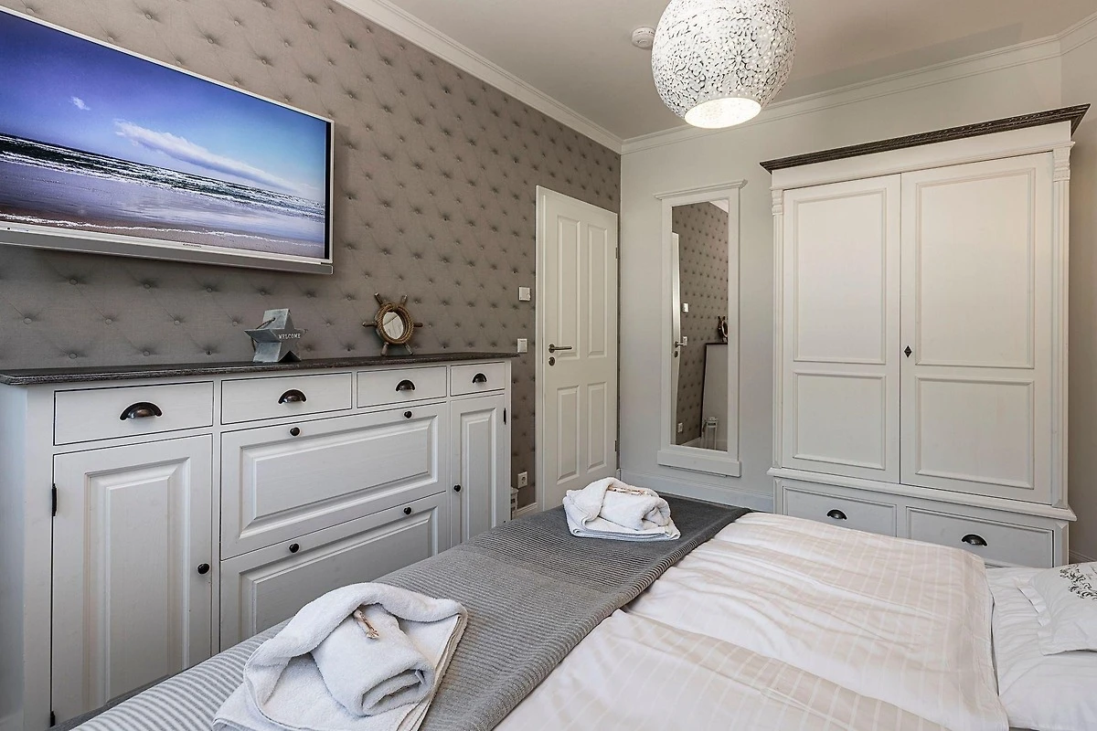 Die Ferienwohnung bietet eine barrierefreie Ausstattung und beeindruckenden Meerblick. Gäste können die hauseigene Sauna nutzen und von der gemeinschaftlichen Atmosphäre profitieren. Für umweltbewusste Reisende stehen E-Ladestationen für Autos und Elektrofahrräder zur Verfügung. Ein perfekter Rückzugsort für erholsame Tage am Meer.