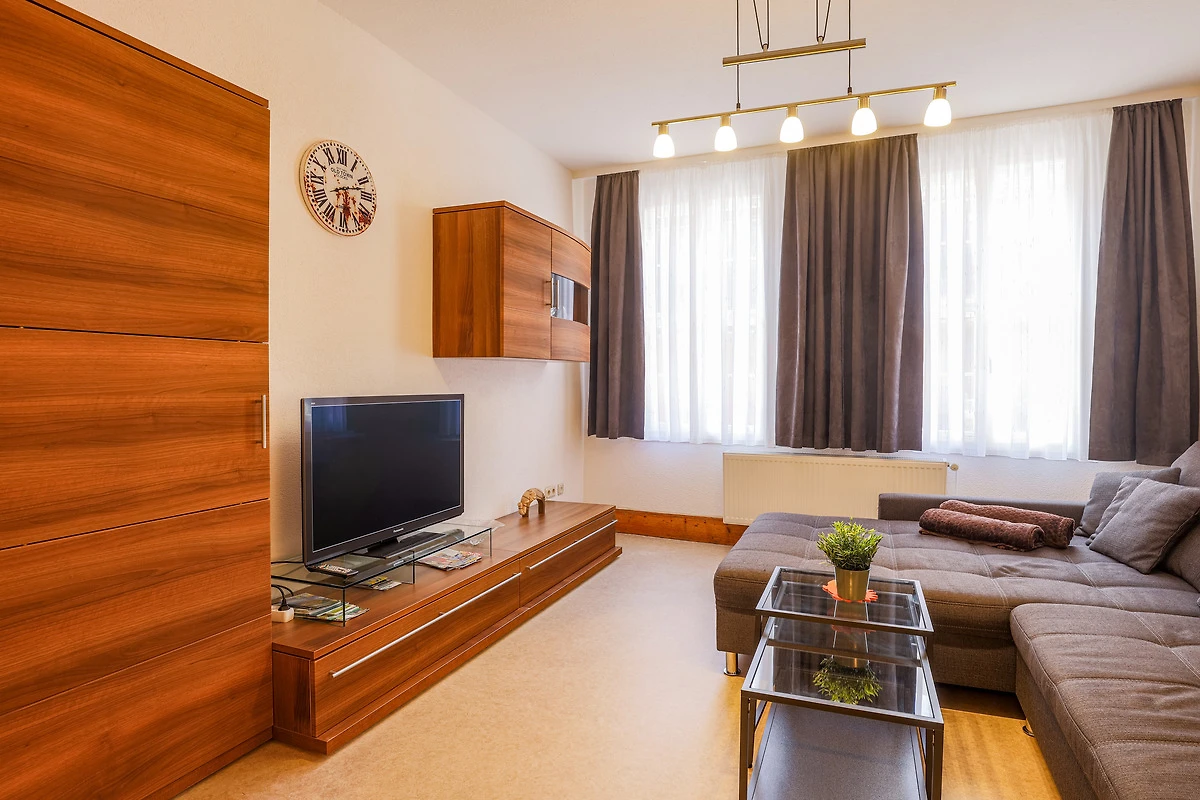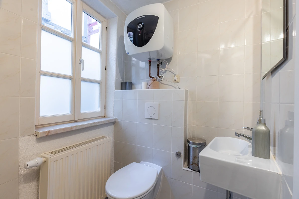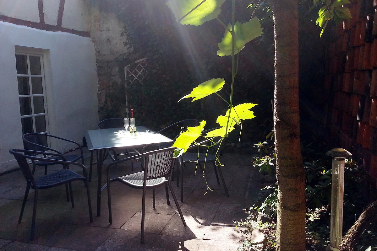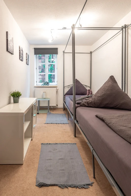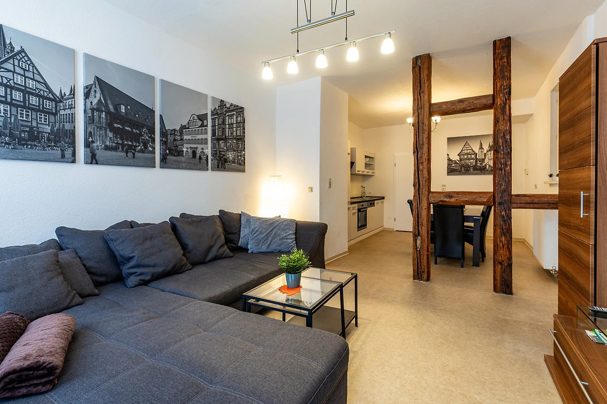 Unsere Ferienwohnung "Zum rost’gen Potte" ist zwar ein echtes Denkmal, trotzdem modern eingerichtet und wurde 2021 frisch renoviert. Im Schlafzimmer entspannen Sie auf einem breiten Boxspringbett - Ihr Gepäck verstauen Sie bequem im separaten Kleiderschrank. Das 2. Schlafzimmer verfügt über 2 Einzelbetten im Himmelbett-Stil. Im Wohnzimmer wartet eine moderne ausziehbare Wohnlandschaft auf Sie - geniessen Sie Ihren Abend bei einem guten Glas Wein und einem Buch oder machen Sie sich einen gemütlichen Fernsehabend vor unserem Flachbild-TV! Die Wohnlandschaft kann bei Bedarf auch in eine dritte Schlafmöglichkeit verwandelt werden. Zusätzlich gibt es im Wohnzimmer einen separaten Essbereich. Die modern eingerichtete Küche verfügt über einen Herd mit Ceranfeld, Backofen, Spülmaschine, Kühlschrank mit Tiefkühlfach, Wasserkocher, Kaffeemaschine und Toaster. Im Bad finden Sie Dusche, Badewanne, Waschbecken, Waschmaschine und WC. Die Ferienwohnung verfügt über kostenloses W-Lan. Fahrräder können in der Hofdurchfahrt sicher und überdacht abgestellt werden.