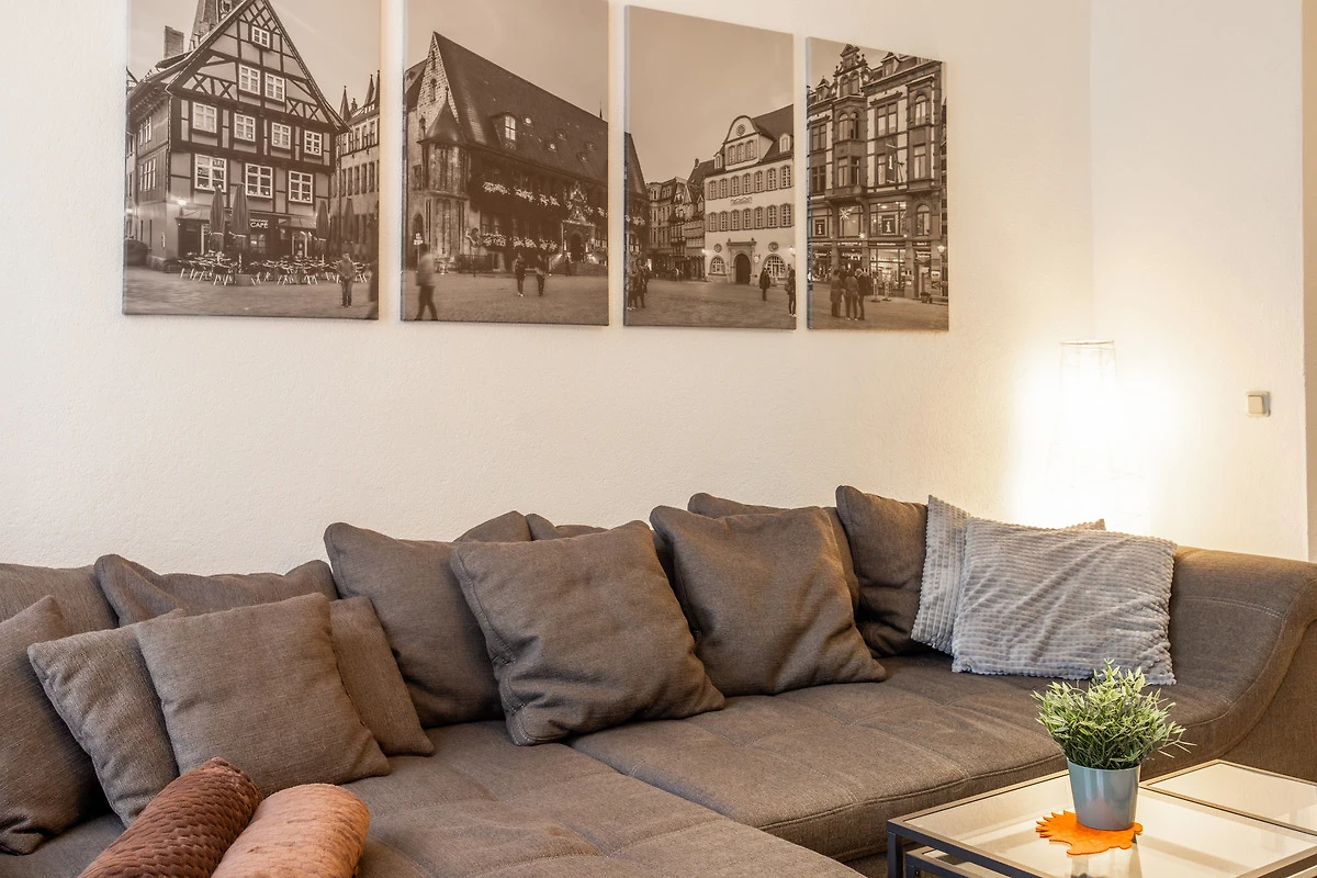 Die Welterbestadt Quedlinburg ist ein Must-See in jedem Harzurlaub. Viele Sehenswürdigkeiten in der Stadt und der Umgebung machen die Tage viel zu kurz, um alles gesehen zu haben. Doch auch Ausflüge in die Region lassen sich von hier aus toll realisieren: Direkt an der A36 gelegen erreichen Sie die Stadtzentren von Wernigerode in ca. 20 Minuten, nach Blankenburg, Thale oder zur Teufelsmauer in ca. 10 Minuten, Aschersleben ist 20 und Goslar ca. 40 Minuten entfernt. Selbstverständlich sind Sie von hier aus schnell im Harz - die Rappbodetalsperre, Harzdrenalin oder Hasselfelde erreichen Sie in weniger als einer halben Stunde. Tip: Von unserer Ferienwohnung erreichen Sie zu Fuss nahezu alle historischen Sehenswürdigkeiten in Quedlinburg innerhalb von 5 Gehminuten! Und nach einem anstrengenden Tag können Sie den Abend in einem guten Restaurant oder einer belebten Kneipe ausklingen lassen und danach quasi direkt in Bett purzeln...