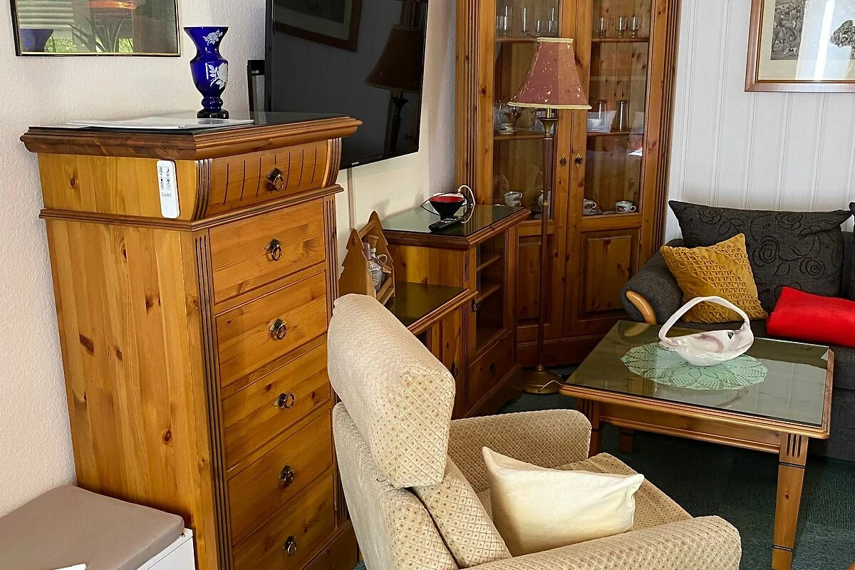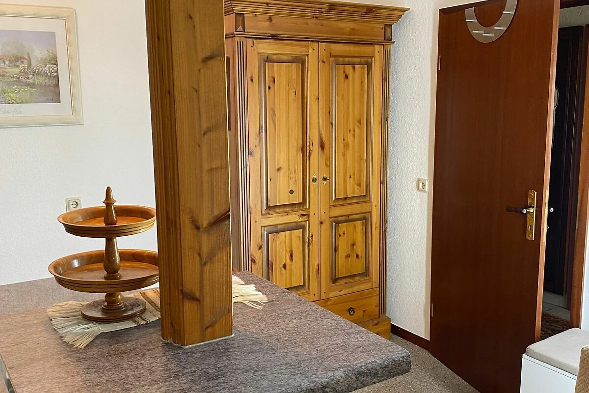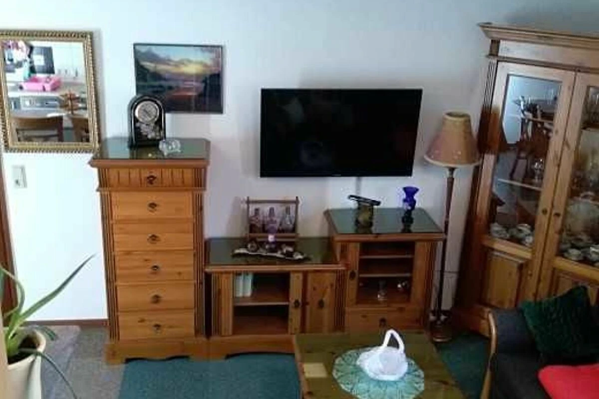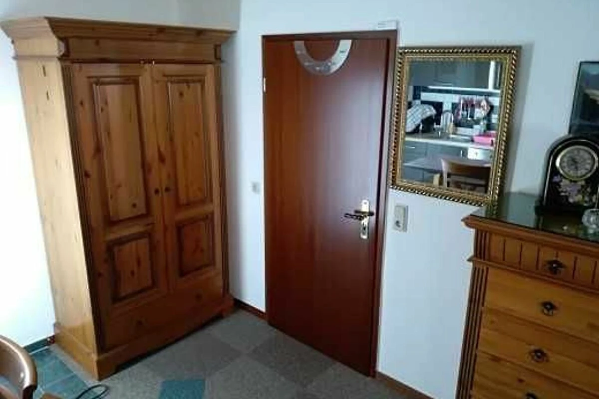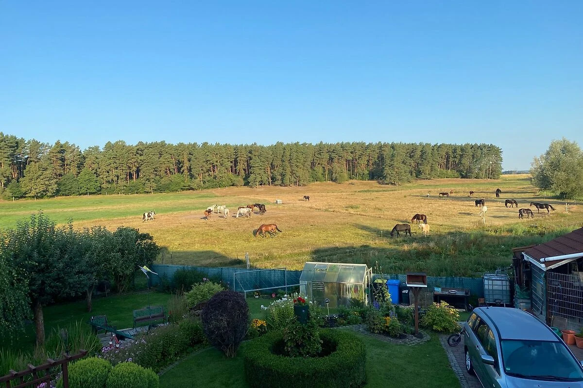 Unsere Ferienwohnung, 2020 vollständig renoviert, gelegen am Waldrand mit grosser Pferdekoppel, verfügt über einen kombinierten Wohn-und Schlafbereich, einem Essbereich mit integrierter Küche und einem Bad mit Dusche und WC. Die Wohnung hat einen eigenen Zugang zum Haus.