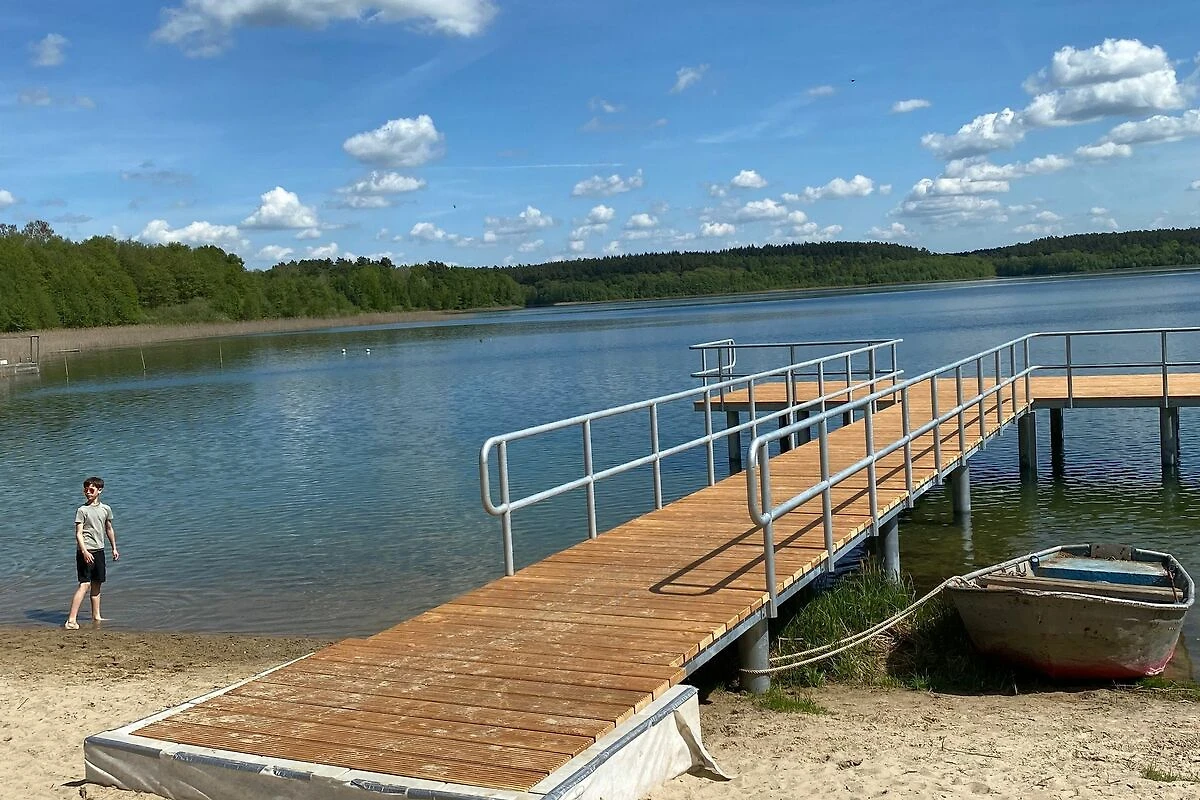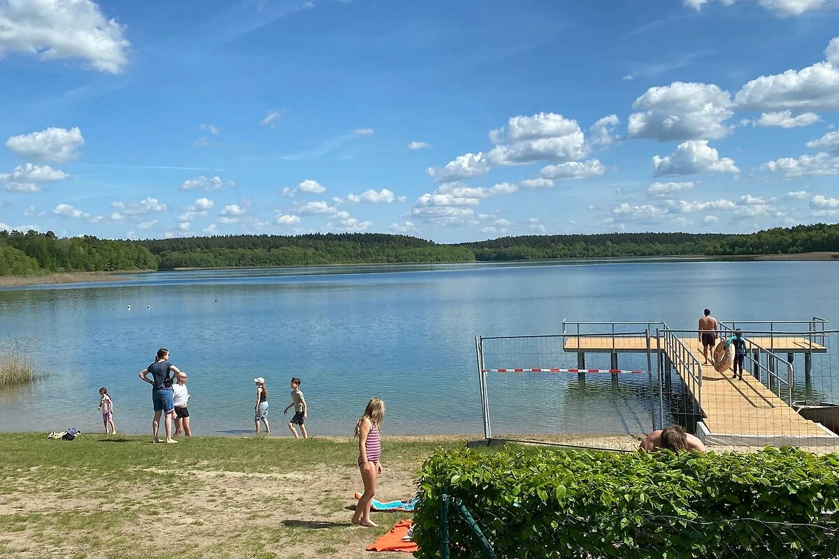 Dieser See, eingebettet von Wald und umgebenen weiteren Seen, verfügt über mehrere Badestellen. Die nächstgelegene ist eine im Ort, ca 5 min. entfernt.