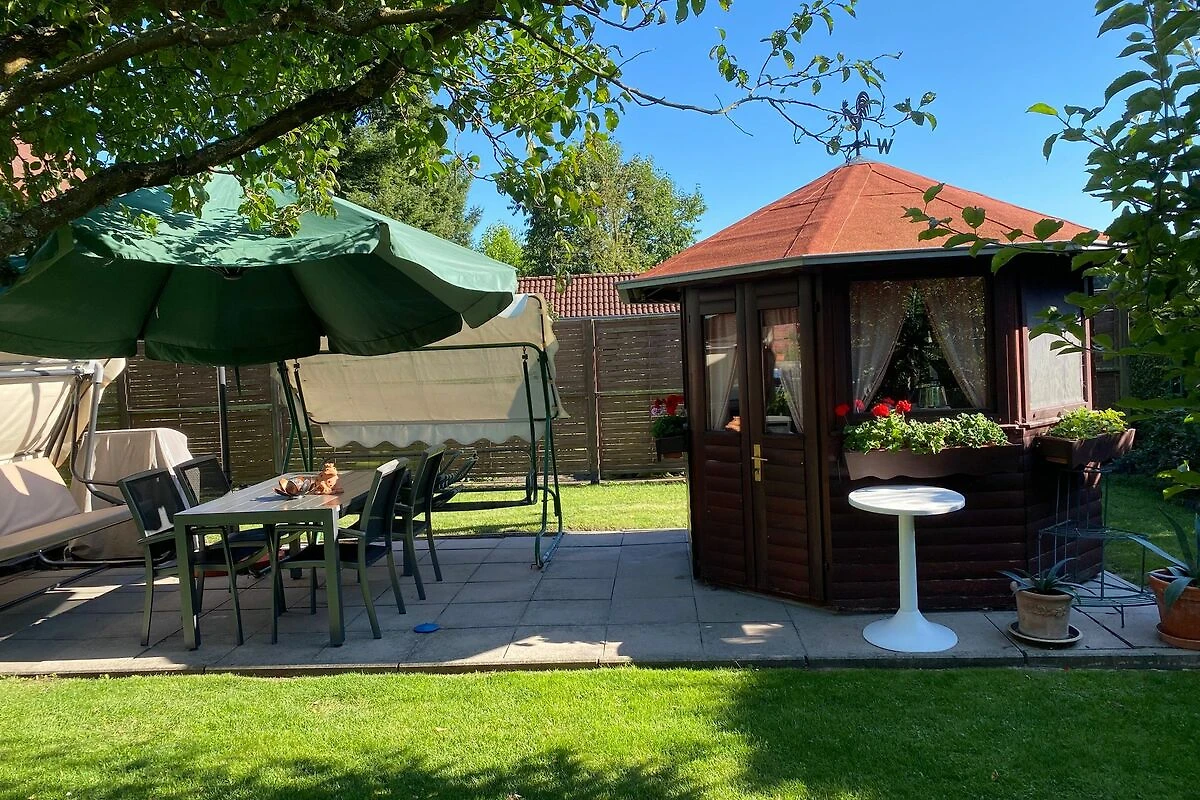 Auf unserem Aussengelände stehen für Sie Gartenmöbel, Sonnenschutz und Grill bereit.