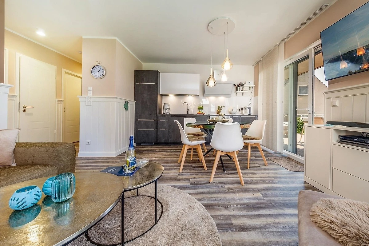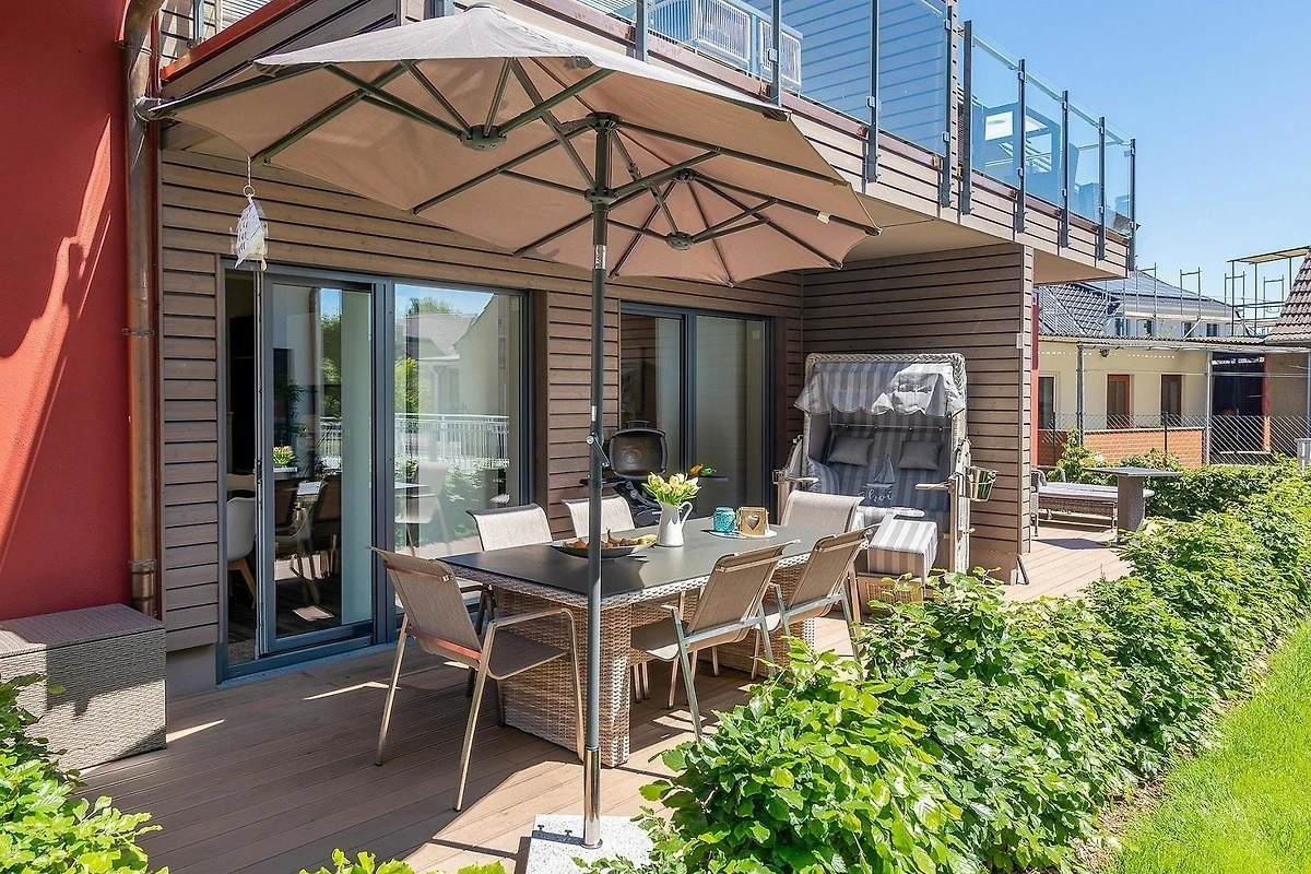 Die Ferienwohnung bietet einen gemütlichen Aussenbereich mit einem einladenden Strandkorb, ideal zum Entspannen und Geniessen der frischen Luft. Die stilvolle Einrichtung sorgt für eine angenehme Atmosphäre, während die Nähe zum Strand eine Vielzahl an Freizeitmöglichkeiten eröffnet. Perfekt für alle, die Erholung und Abenteuer in harmonischem Einklang erleben möchten.