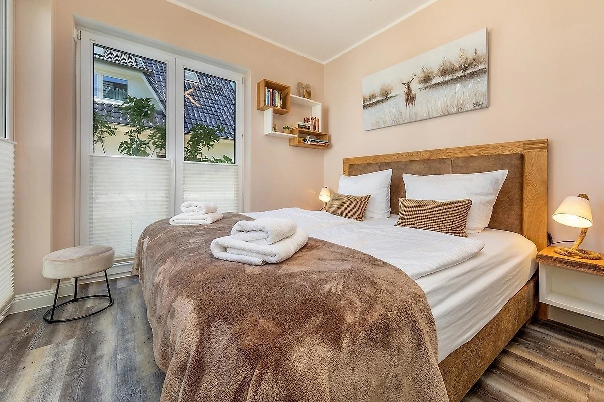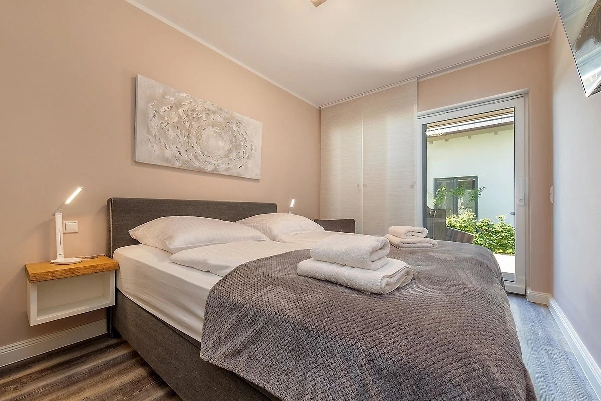 Die Ferienwohnung bietet ein modernes und komfortables Ambiente mit zwei Schlafzimmern, ausgestattet mit je einem Doppelbett, ideal für Familien oder Gruppen. Die offene Küche ist hochwertig eingerichtet und verfügt über einen Geschirrspüler, Elektro-/Gasherd, Backofen, Kühlschrank, Kaffeemaschine, Toaster sowie eine Gefriermöglichkeit. Ein gemütliches Sofa im Wohnbereich lädt zum Entspannen ein, während die Fussbodenheizung für angenehme Wärme sorgt.
