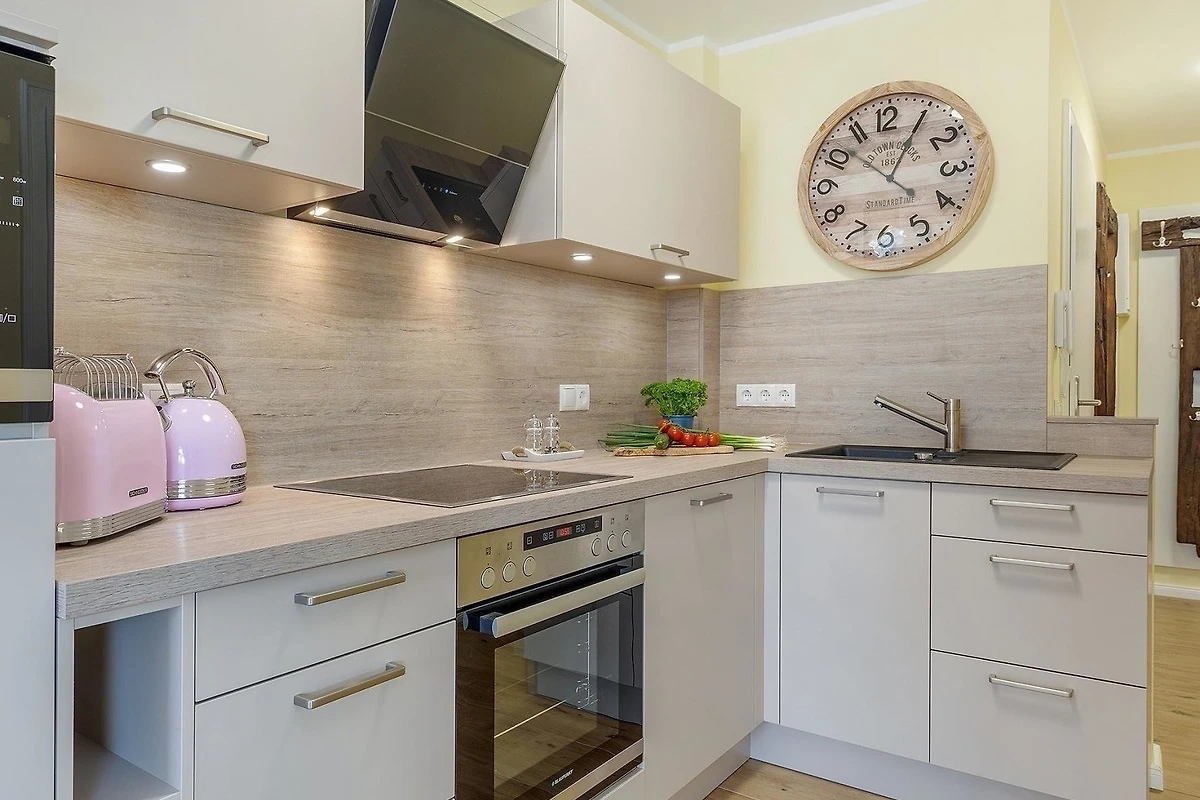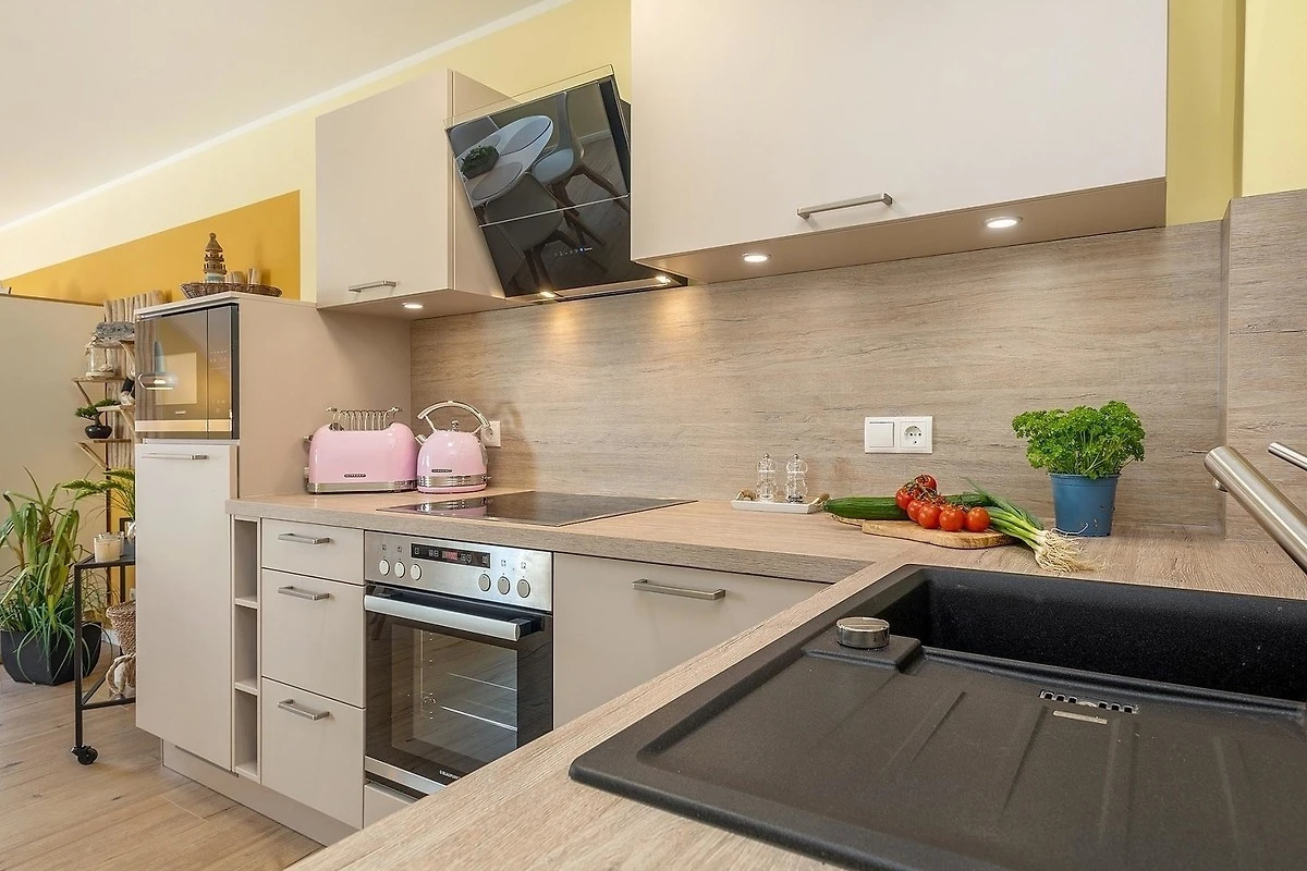 Die Ferienwohnung bietet eine harmonische Kombination aus modernen Annehmlichkeiten und komfortablem Ambiente. Sie umfasst zwei Schlafzimmer, ausgestattet mit einem Doppelbett und zwei Einzelbetten, ideal für Familien oder Gruppen. Die offene Küche ist vollständig ausgestattet mit einem Elektro-/Gasherd, Backofen, Geschirrspüler und Mikrowelle sowie einer Kaffeemaschine, Toaster und Kühlschrank mit Gefriermöglichkeit. Das Badezimmer verfügt über eine bodengleiche Dusche, Haartrockner und einen Kosmetikspiegel und ist mit einem Fenster für ideales Licht ausgestattet. Komfort wird durch Fussbodenheizung, einen gemütlichen Wohnbereich mit Sofa und Sessel sowie eine HiFi-Anlage und TV ergänzt. WLAN steht zur Verfügung, sodass sich auch Allergiker wohlfühlen können. Ein Parkplatz sowie Waschmaschine, Bügeleisen und Staubsauger runden das Angebot ab. Fliegengitter, Wäscheständer und ein Sonnenschirm bieten zusätzlichen Komfort für einen entspannten Aufenthalt.