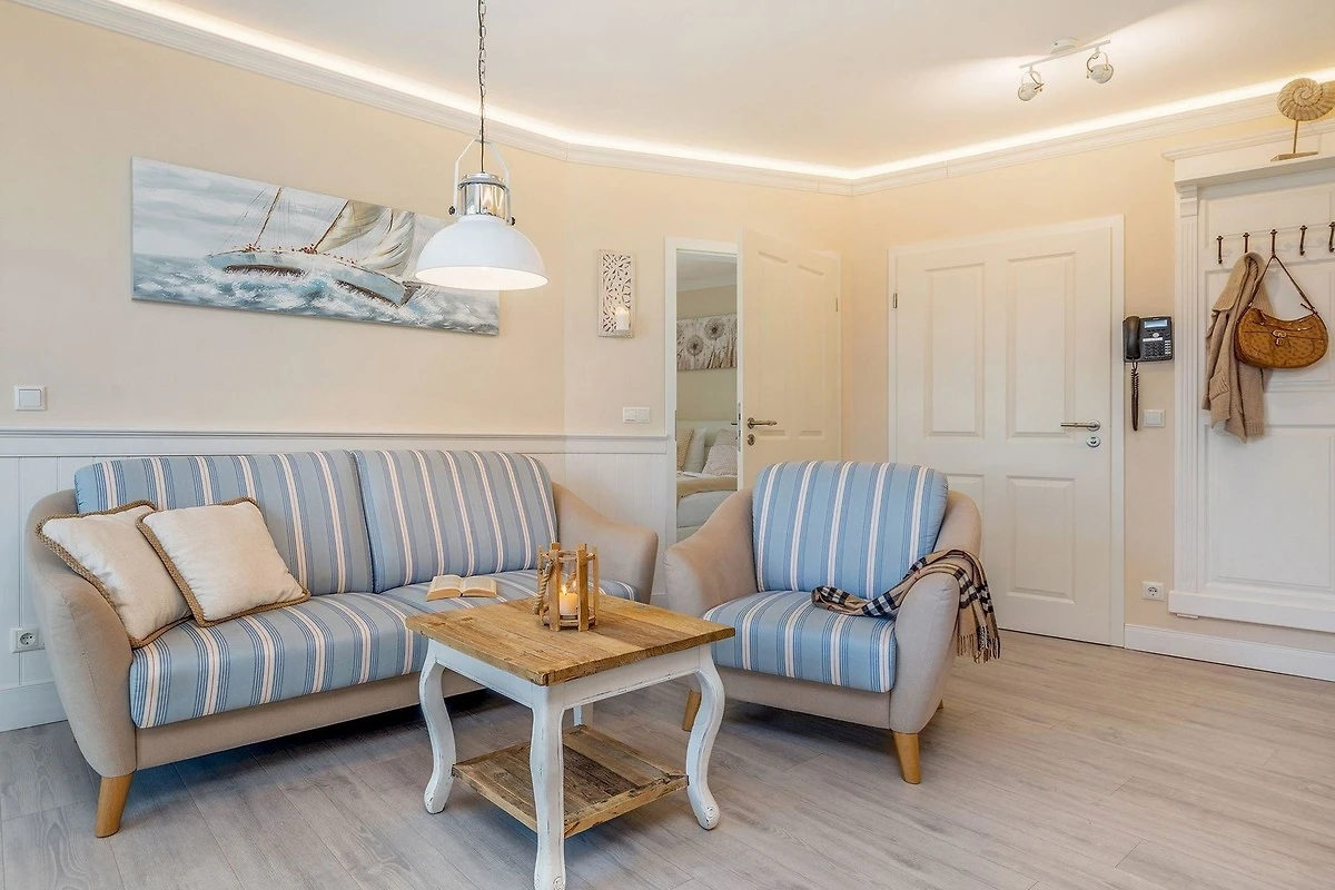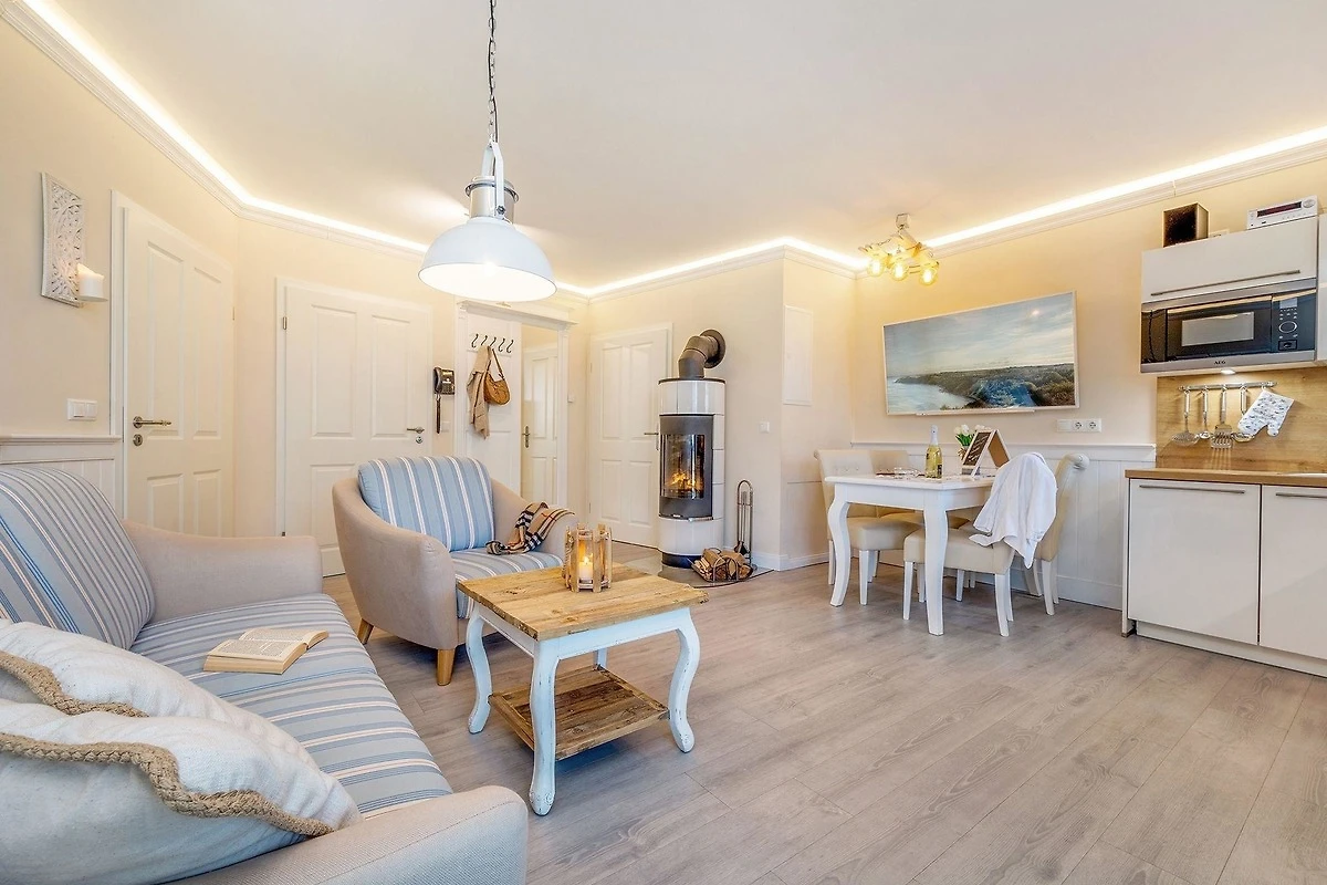 Die Ferienwohnung befindet sich in einer erstklassigen Lage, nur wenige Schritte von der Ostsee entfernt. Der Strand ist gleich vor der Tür und lädt zu langen Spaziergängen in frischer Seeluft ein. Zum charmanten Zentrum des Ostseebades Zingst sind es lediglich etwa 1 Kilometer, der leicht zu Fuss über die Strandpromenade oder durch das malerische Dorf erreicht werden kann. Die Umgebung bietet eine Vielzahl an Freizeitmöglichkeiten, darunter Angeln, Golfspielen und Reiten, sowie ausgedehnte Rad- und Wandertouren. Der Nationalpark Vorpommersche Boddenlandschaft, bekannt für seine beeindruckenden Landschaften und als Rückzugsort für Kraniche, liegt in unmittelbarer Nähe. Besucher können sich auf Aktivitäten wie Windsurfen, Tauchen, Kanufahren und Vögelbeobachtung freuen. Entspannung bieten die örtlichen Spas und Massagen, während kulturelle Veranstaltungen das Gesamtpaket abrunden.